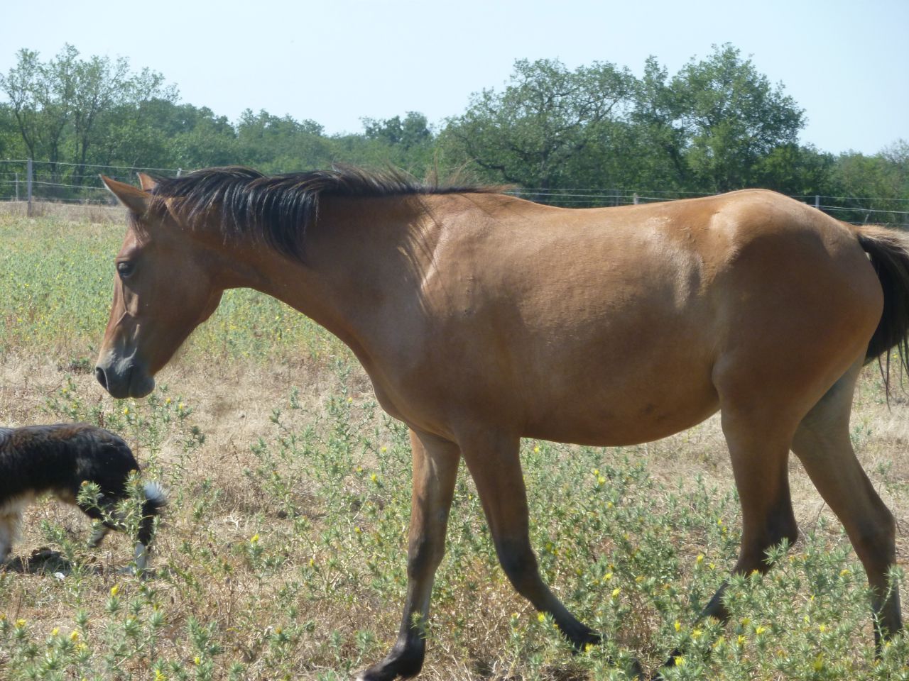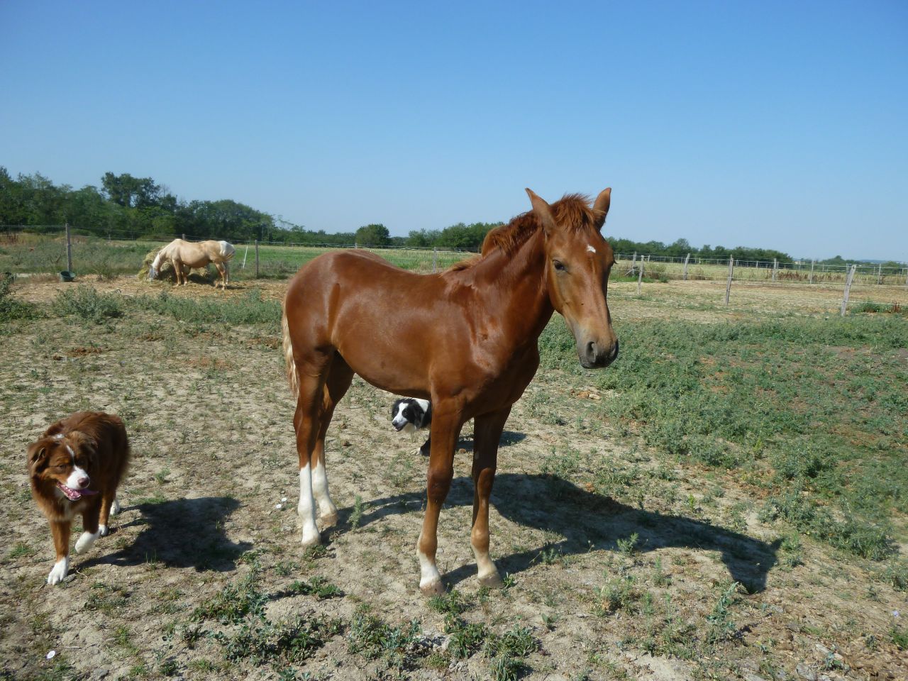 | Dire merci | Soooo, depuis dimanche je suis l'heureuse (pluuuuuuuus qu'heureuse en fait ) propriétaire de Beleza du Turel que nous sommes allés chercher près de Carcassonne. On a mis 4h à lui mettre le licol, la sortir du parc et la monter dans le van mais depuis qu'on a fermé la porte du van derrière elle, c'est un amour ! Elle n'a pas bougé pendant les 11h de route, à chaque pause pipi on lui enlevait des mouches plates (au total sûrement plus de 100 mouches ), elle ne bronchait pas (alors que durant 3 mois ses proprio n'ont jamais réussi à lui mettre un licol et à en faire quoi que ce soit). Pour les photos et les infos supplémentaires sur sa nouvelle vie, direction mon post Merci Horselover |