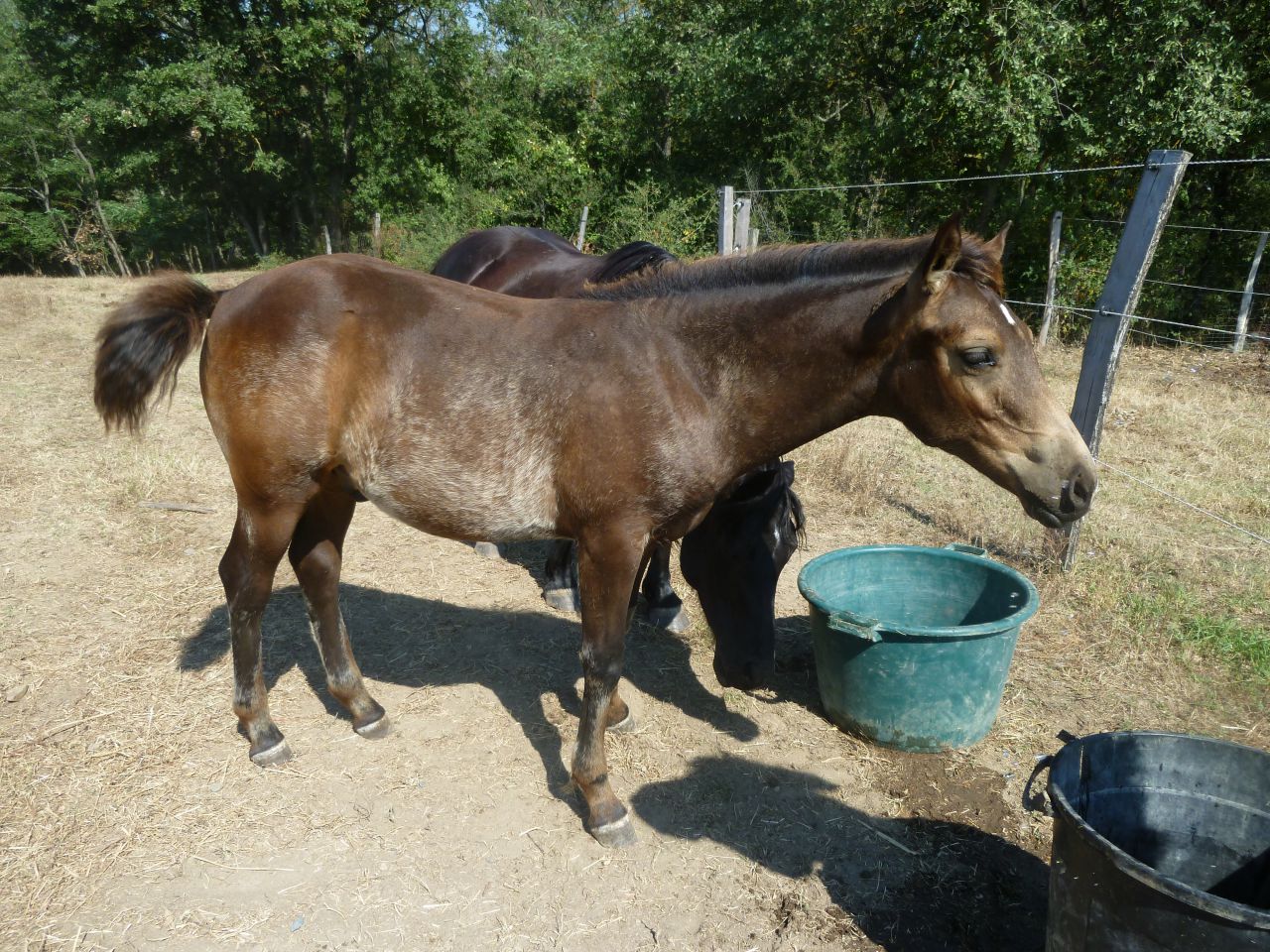 | Dire merci | Hey! Caméo a foncé sur les antérieurs mais sa petite couette éclaircie et pas sa crinière et il a sa petite pelote comme Tiara Par contre il a déjà une encolure et une croupe qui Tiara a mis longtemps à arrondir Ici retour de vacances, les pépères étaient chouchoutés par "papy"/"mamie" (brossage régulier et corvée de crottins tous les jours (avec cette chaleur!!!!) Peut être des photos fin de semaine prochaine car visite d'une petite fille qui va vouloir monter sur Tiara ![]() |