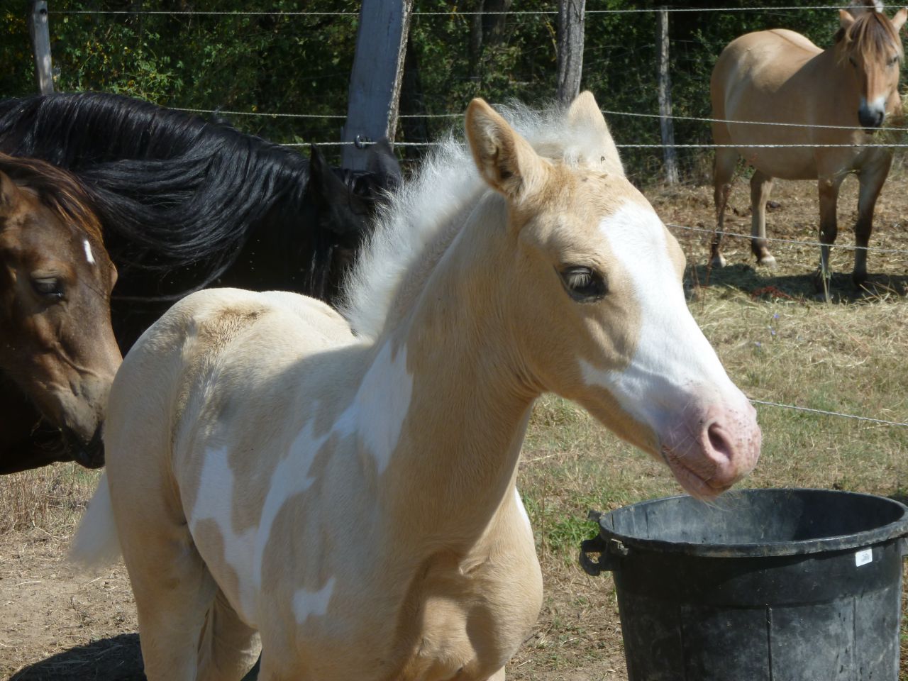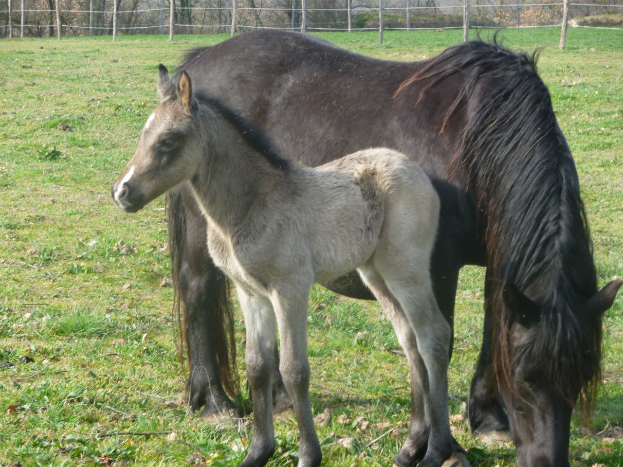 ) pour telle ou telle pouliche, voire les parents. Voici donc tout d'abord la première arrivée le 14 avril, Pépite d'Or, type shetland ONC de robe palomino fumé (si, si vous verrez plus tard