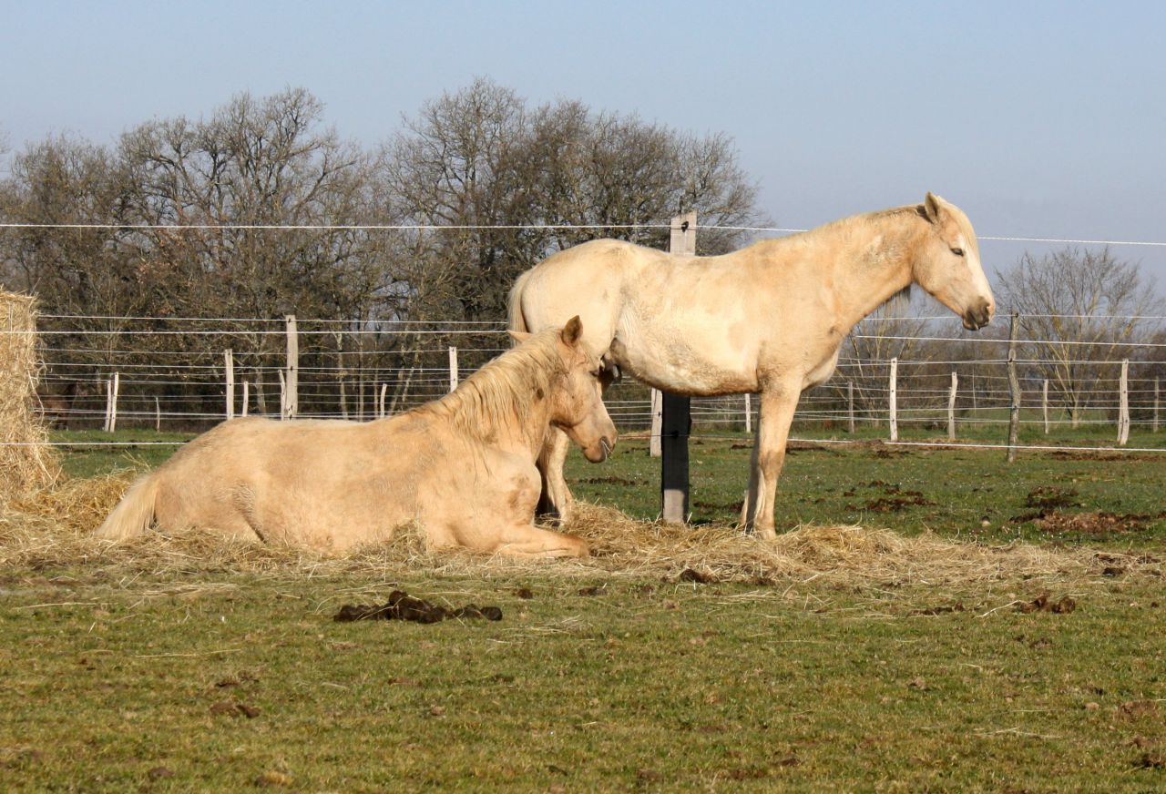 | Dire merci | Oyéééé, oyééééééééééé JOIA s'est enfin décidée. Ce matin elle a lâché le paquet, un grand poulinou palomino comme papa, aucun blanc, et d'une robe qui laisse présager un palomino doré à souhait. Le nom viendra après. Maman et bébé se portent bien. Je transfère quelques photos d'une piètre qualité en attendant les belles photos de Lydie ![]() |