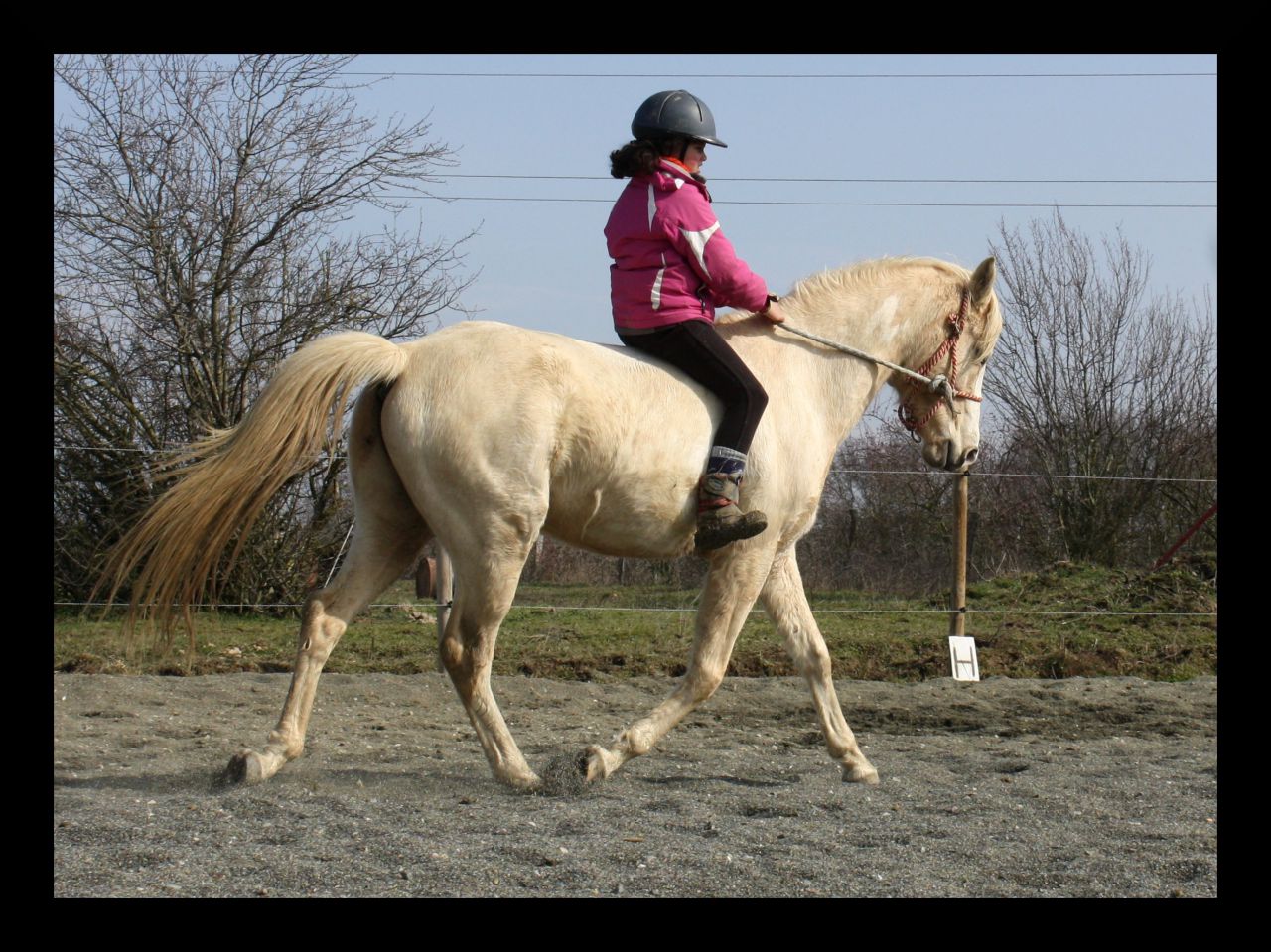 | Dire merci | ![]() Elle aime bien jouer, mais dès qu'on arrête de la titiller elle se pose tout de suite. ![]() Elle évolue vraiment bien, nous en sommes ravies ![]() elle sait trotter ET à gauche ET à droite ![]() voire galoper... (vous avez vu la vieille Kerry qui est toujours là et toujours d'humeur à jouer )![]() |
