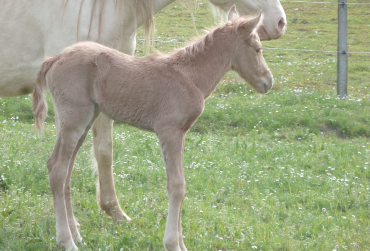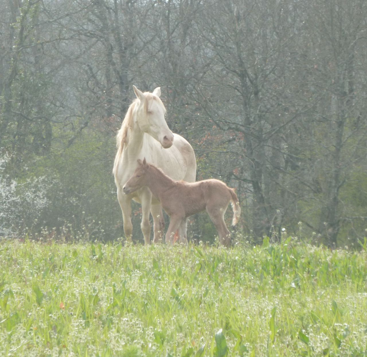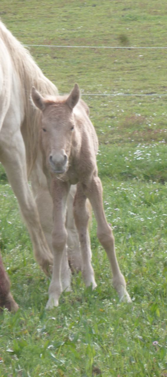 ) pour telle ou telle pouliche, voire les parents. Voici donc tout d'abord la première arrivée le 14 avril, Pépite d'Or, type shetland ONC de robe palomino fumé (si, si vous verrez plus tard