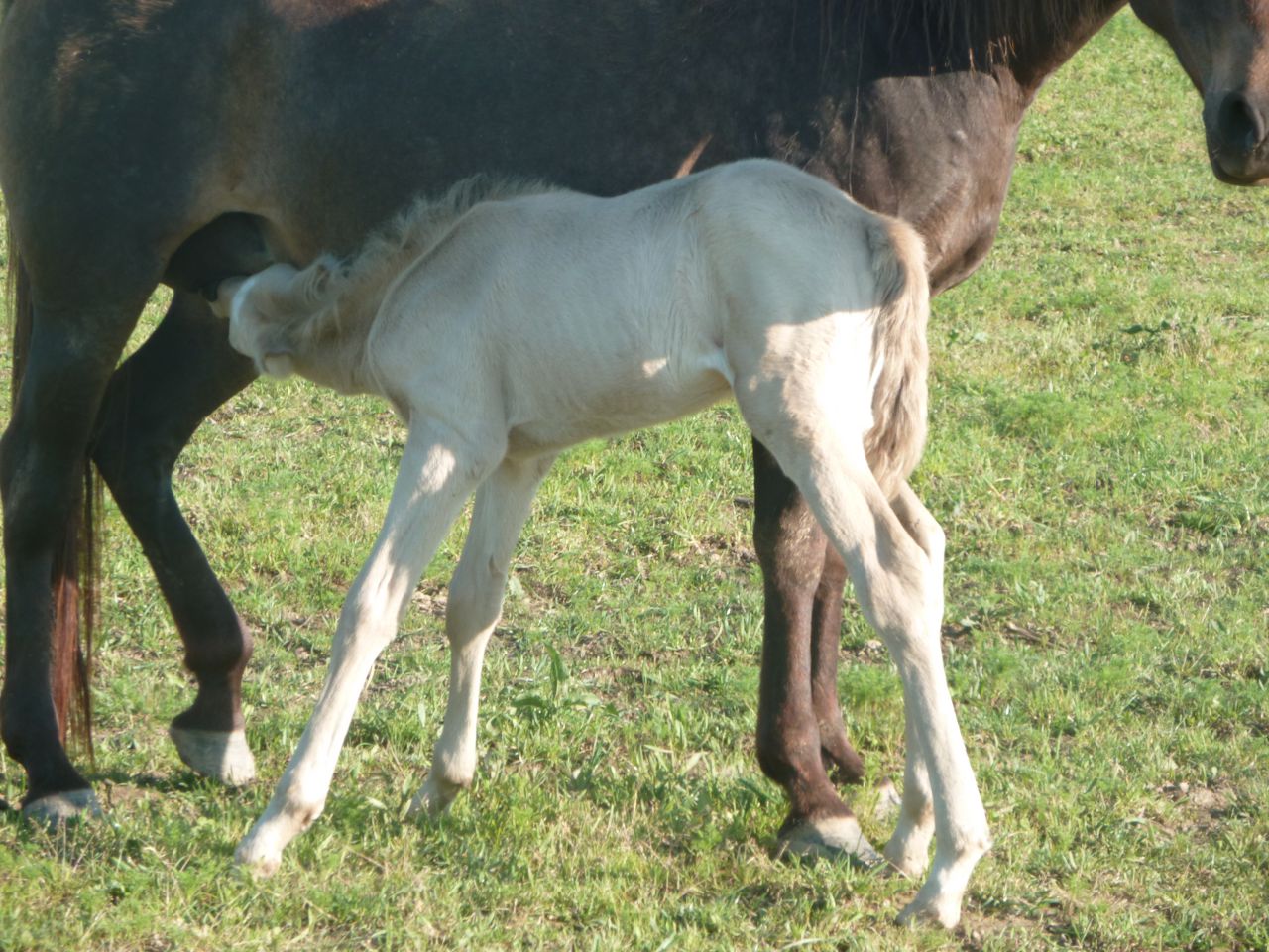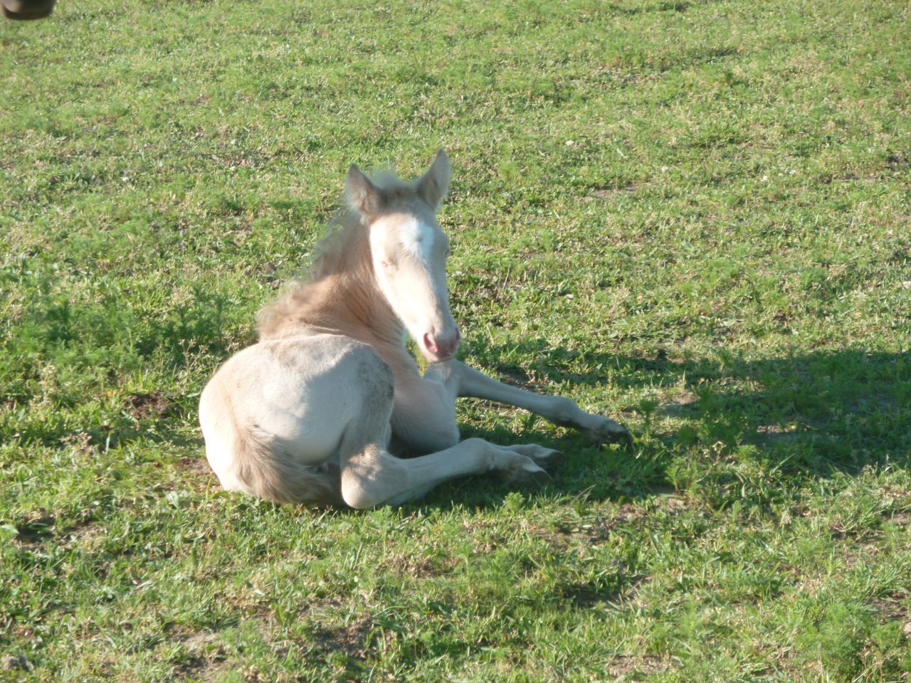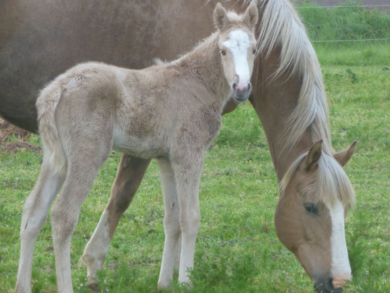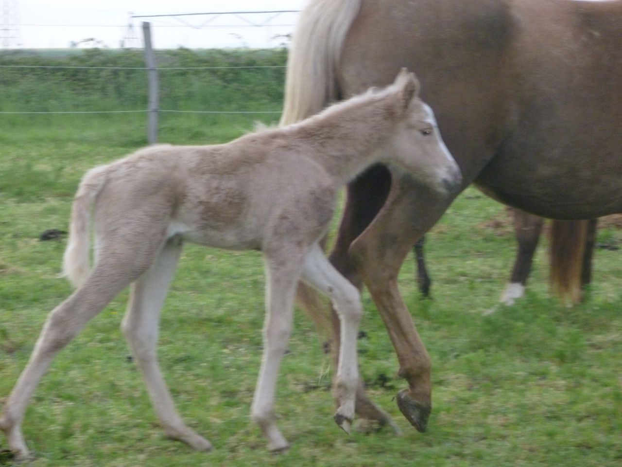 ) pour telle ou telle pouliche, voire les parents. Voici donc tout d'abord la première arrivée le 14 avril, Pépite d'Or, type shetland ONC de robe palomino fumé (si, si vous verrez plus tard