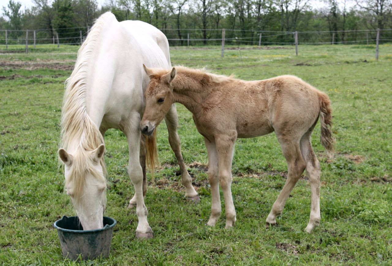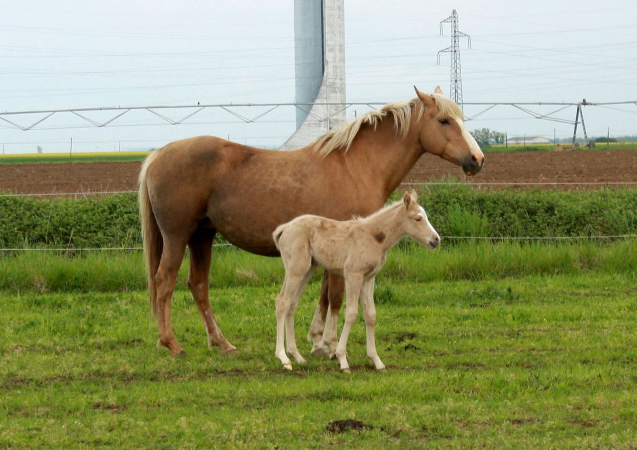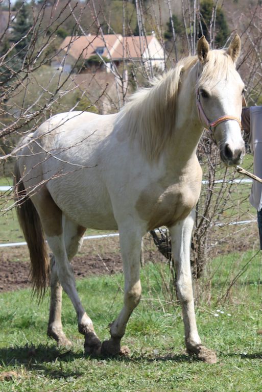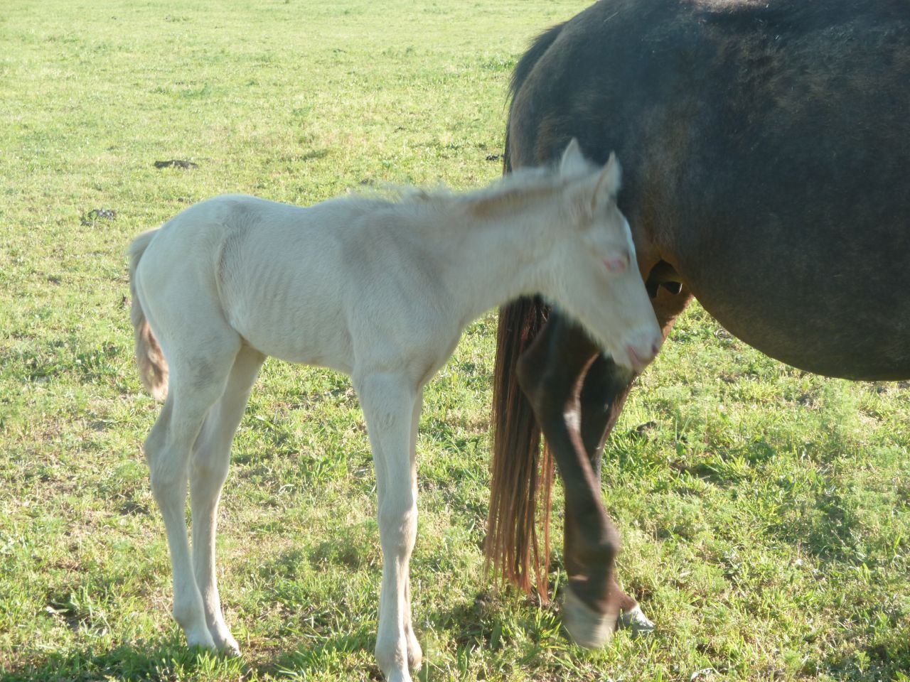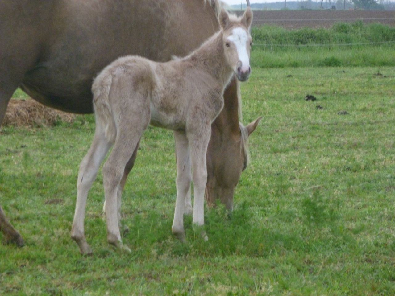 ) pour telle ou telle pouliche, voire les parents. Voici donc tout d'abord la première arrivée le 14 avril, Pépite d'Or, type shetland ONC de robe palomino fumé (si, si vous verrez plus tard