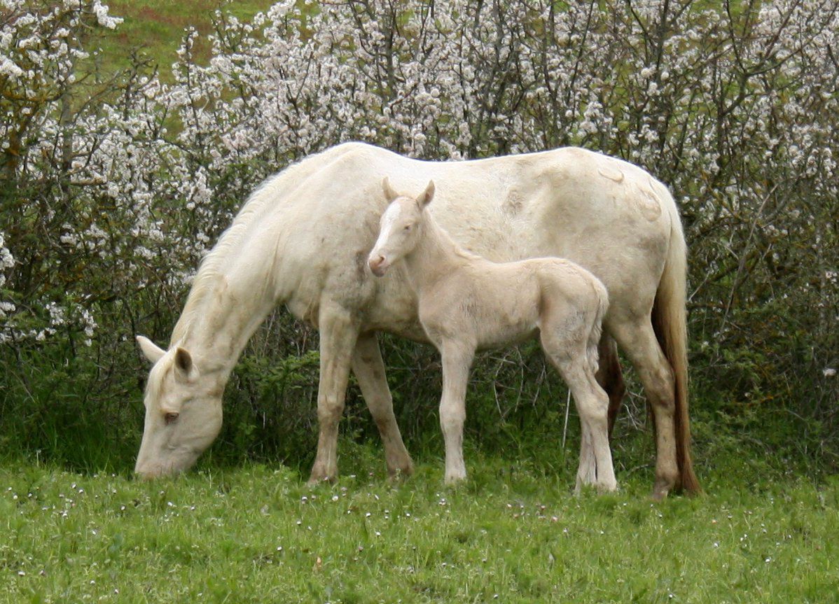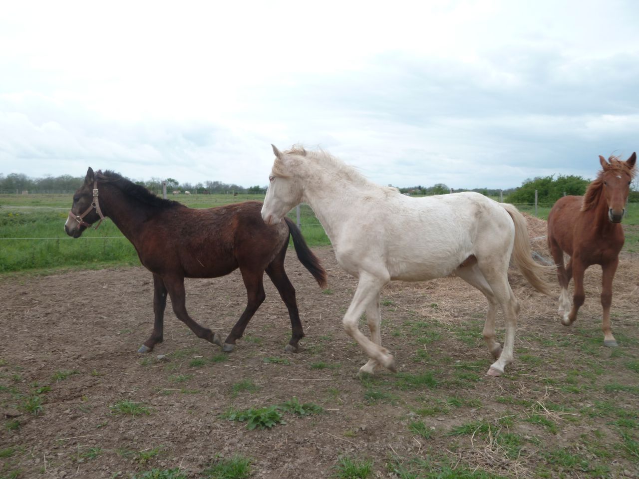 | Dire merci | Bon, comme il y a des mauvais élèves dans la classe, je vois que je serai obligée de faire un récap' photographique Heureusement que Lydie est passé par là ![]() Joia x Quallisto = DJALLISTO, poulain palomino ![]() Idole x Quallisto = DAENERYS, pouliche cremello ![]() Juliana x Storm = DULCIANA, pouliche palomino ![]() Udine x Quallisto = DAKSHA, poulain perlino ![]() Bon, maintenant on peut jouer à "à qui ces poulains" ou "quel est mon nom?" ![]() |
