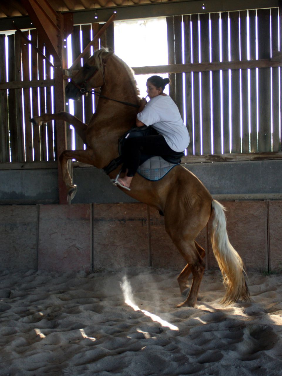 | Dire merci | Pas un poulinou cette fois-ci, mais je suis sûre que vous voulez voir Quallisto mode "après castration" Il a repris le chemin de l'école en préparation de l'ouverture officiel du centre équestre le 1er septembre. Il y aura une portes ouvertes avec spectacles donc ça bosse, ça bosse ![]() Je vous préviens, c'est un exercice à ne pas reprendre à la maison (sans bombe et en tongs ) ![]() Bon, comme vous le verrez, les bijoux de famille ne sont pas les seules choses à avoir été coupées.... Il avait arraché un morceau de crins sur une dizaine de cm donc Barbie ne fait plus Barbie, même si on a réussi à garder le toupet en souvenir ![]() un peu de pas espagnol ![]() et un peu de pas français ![]() ![]() petite révérence ![]() et le clou du spectacle, comme d'habitude... ![]() |