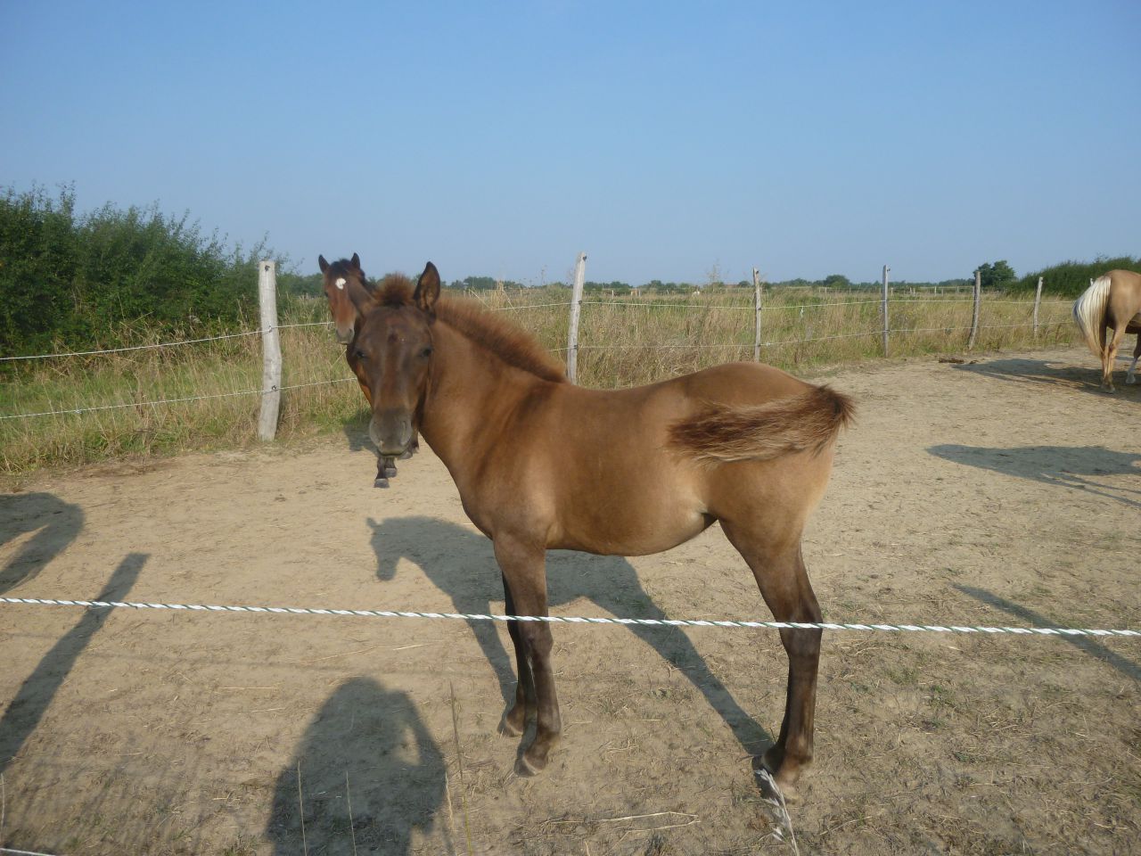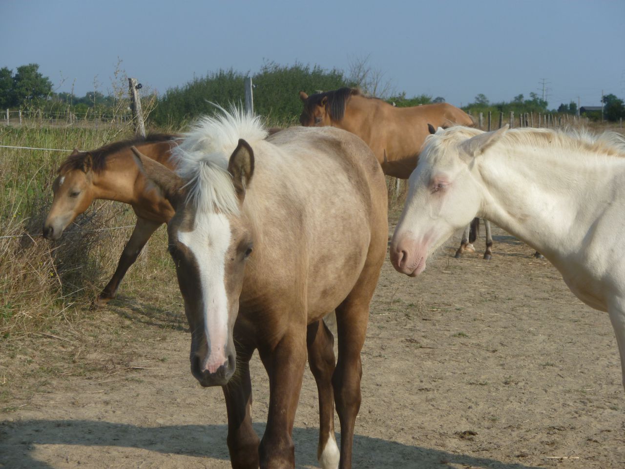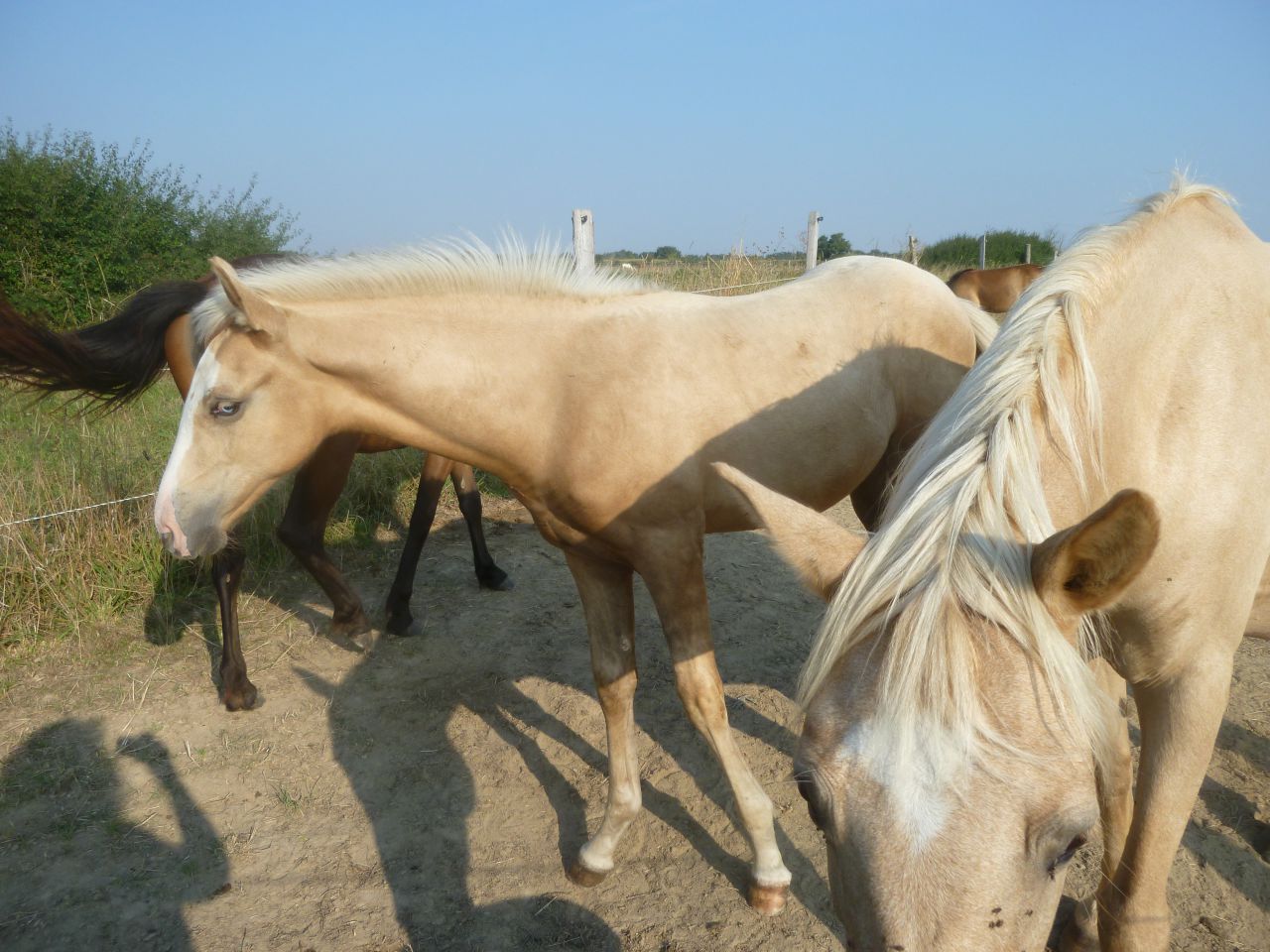 ) pour telle ou telle pouliche, voire les parents. Voici donc tout d'abord la première arrivée le 14 avril, Pépite d'Or, type shetland ONC de robe palomino fumé (si, si vous verrez plus tard