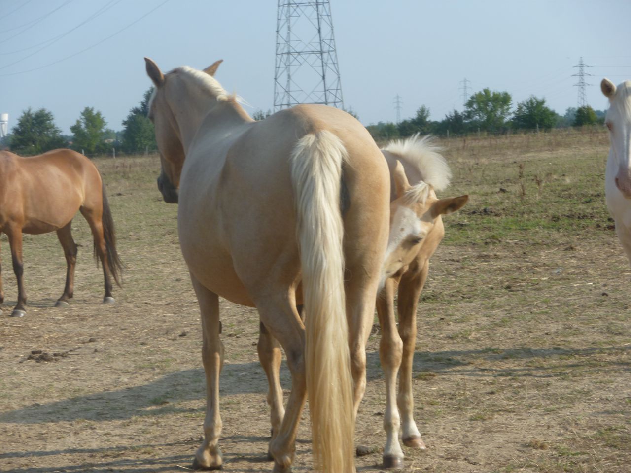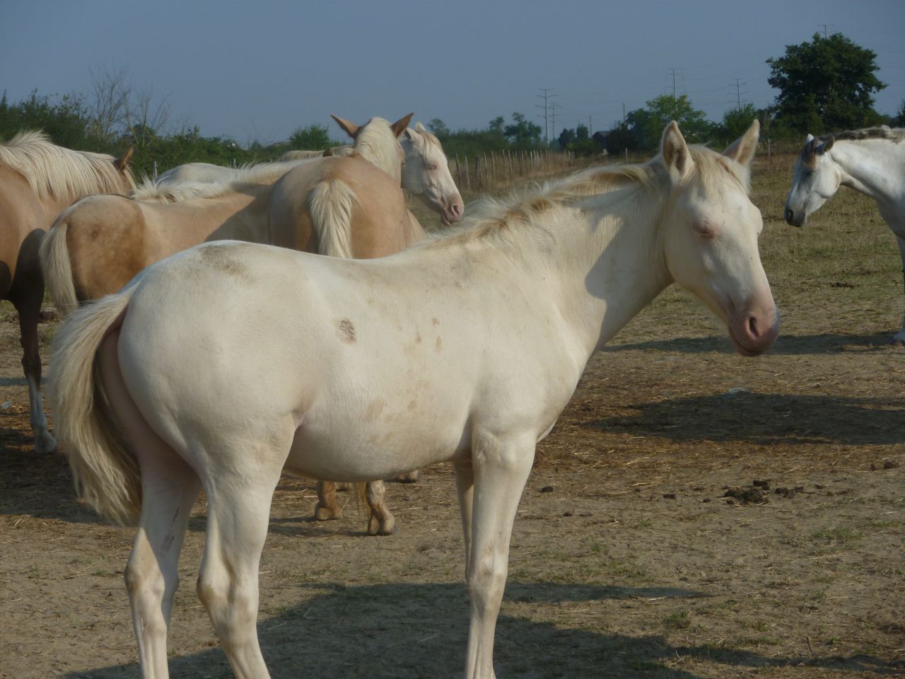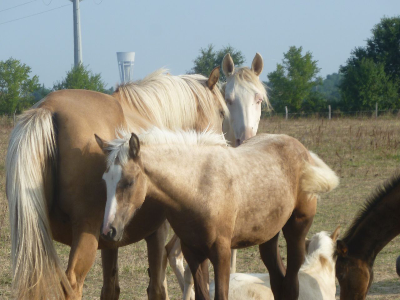 ) pour telle ou telle pouliche, voire les parents. Voici donc tout d'abord la première arrivée le 14 avril, Pépite d'Or, type shetland ONC de robe palomino fumé (si, si vous verrez plus tard