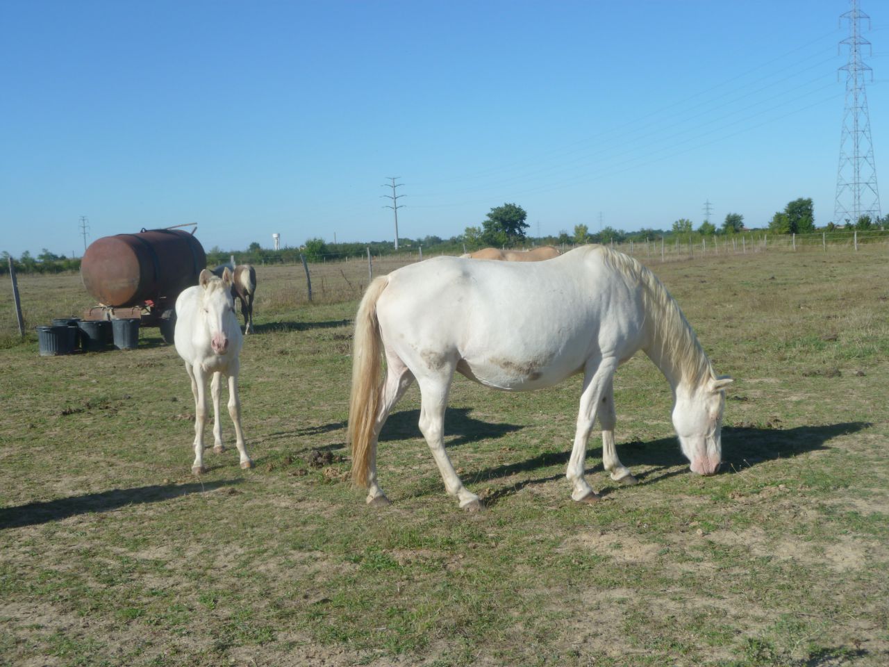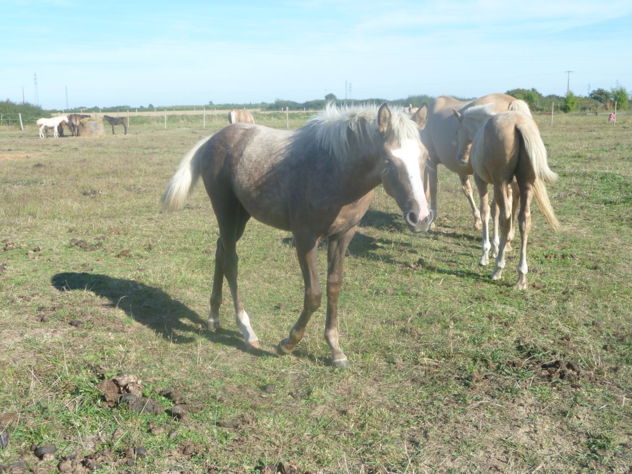 ) pour telle ou telle pouliche, voire les parents. Voici donc tout d'abord la première arrivée le 14 avril, Pépite d'Or, type shetland ONC de robe palomino fumé (si, si vous verrez plus tard