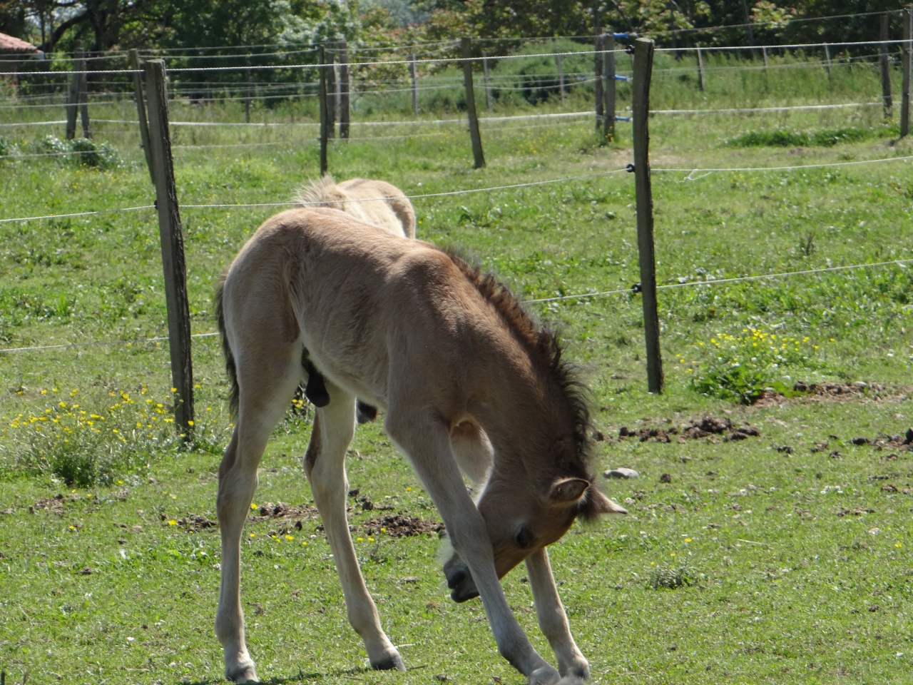| Dire merci | Gloups, elle a dépassé ses parents. D'ailleurs Nevada est revenue pour une saillie de Storm donc au Turel actuellement ![]() Allez, 3 poulinous cette année, 3 mecs pour se chamailler et jouer ensemble. Comme c'était la journée "spectacle", le dernier arrivé s'y est mis aussi... "E..." vous salue ![]() Sinon il est comme ça. Je le trouve bien fait (Joia x Quallisto) et effectivement c'est un isabelle. ![]() Emgann et Elfego passent leur temps à se chercher ![]() Qui, nous ???? Jamais... ![]() ![]() On veut juste faire des bisous ![]() ![]() |