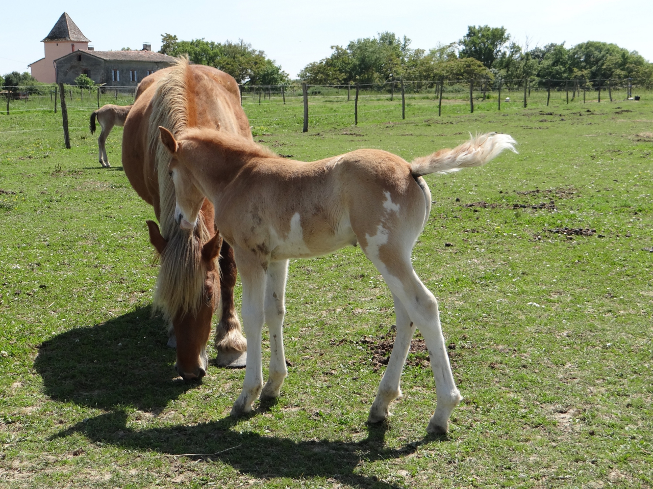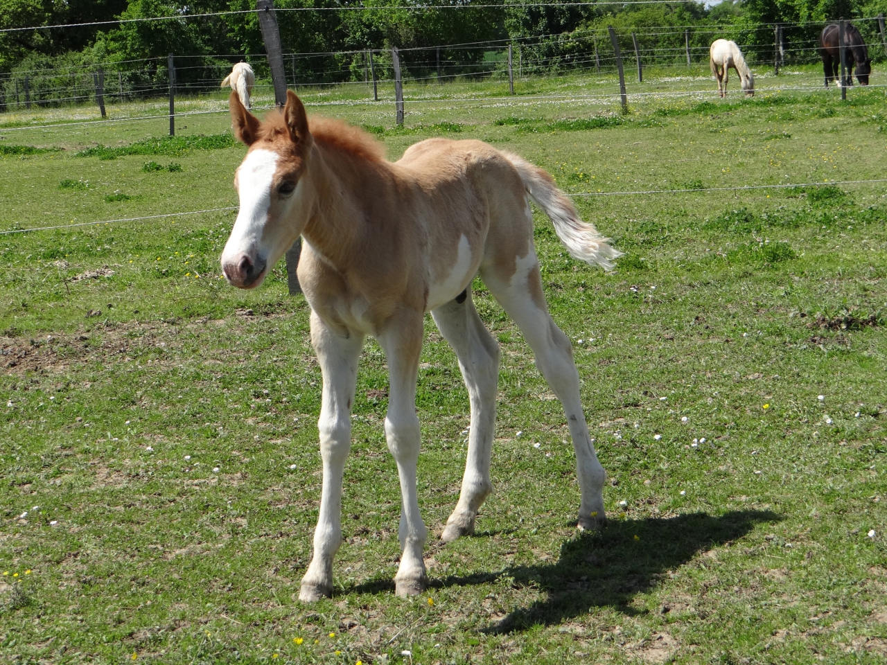 ) pour telle ou telle pouliche, voire les parents. Voici donc tout d'abord la première arrivée le 14 avril, Pépite d'Or, type shetland ONC de robe palomino fumé (si, si vous verrez plus tard