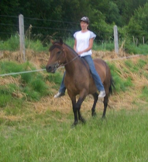 | des news de ma louloute elle a bien progressé je lui ai appris le coucher monter elle est nickel meme si on a étè stoppé un mois car je me suis cassé me pied et hier nous avons tester l'equipement western pour voir un peu si ça lui va