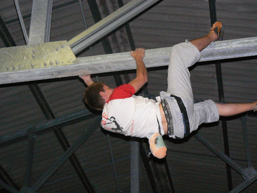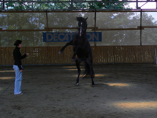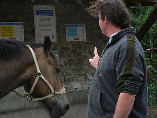 | Dire merci | M. Malaya est complètement taré !!!! c'est son boulot ou bien? Non, non, il a un boulot bien sérieux ! Par contre quand tu vas chez M. et Madame Malaya, tu ouvres une sorte de garage et c'est un véritable mur d'escalade qui y a, même le plafond est travaillé avec des prises, c'est excellent ! Et encore là il a joué avec sa passion de l'escalade, j'ose même pas imaginé s'il nous avait ramené ses crocrodiles dans le manège ! |
