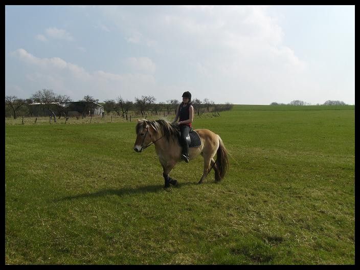 | Dire merci | Bah elle est assez calme..surtout que dernièrement j'ai eu une grosse frayeur car début de fourbure: sabots chauds etc... Mais je manque d'encadrement ça c'est clair et net quoi on peut pas avancer. Quand je vous tout ce que vous faites avec les filles, ça me laisse rêveuse. Donc bon pour l'instant balades quoi..et puis vu le temps je ne peux pas la travailler dans son pré donc bon ça limite les choses aussi. Sinon j'attend ma nouvelle selle |