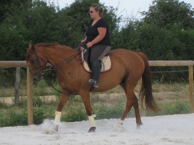 Déconnecté | Marsu Pour les liens j'ai pas arreter de chercher hier soir impossible de trouver ... tant pis !! Un petit paddockage a la fin de la séance pour faire le tour de la piste de galop et pour re-rentrer dans la carrière pour finir la séance (je m'arrete toujours dans la carrière et on rentre a pied aux écuries !) Pour le sable c'est une carrière en sable de Fontenaibleau c'est le top du top Pour les mains c'est normal c'est que je le soutien énormement encore afin qu'il s'allège !! Et puis il est de rigeur de savoir que plus tu a les mains basses plus le cheval leve la tete un inversement ! Aujorud'hui il est pas assez stable pour que je puisse baissé ... et des fois sur les photos elles sont tres hautes parce que j'ai des renes trop longue ... vu la chaleur ni bombe ni gants sinon je serais morte cuite ! Lones Je suis pas contente du jaune ... je suis fan c'est pire Hier il m'a donné énormement ... il a été avec moi quasi du début a la fini, il a répondu a toutes mes demandes sans s'y soustraire ... On était en harmonie !!Pourtant je pensais pas que la séance se passerait comme ca, parce qu'il fallu le poussé au cul pour qu'il aille dans la carriière ! Mais je me rends compte que c'est dernier temps malgré ce qui s'est passé, un lien tres fort nous unit et quand on arrive a communiqué et bien ce n'est que du bonheur ! Vanou oui je sais pour la bombe !! Merci pour le reste |