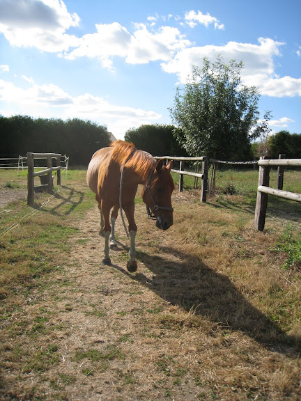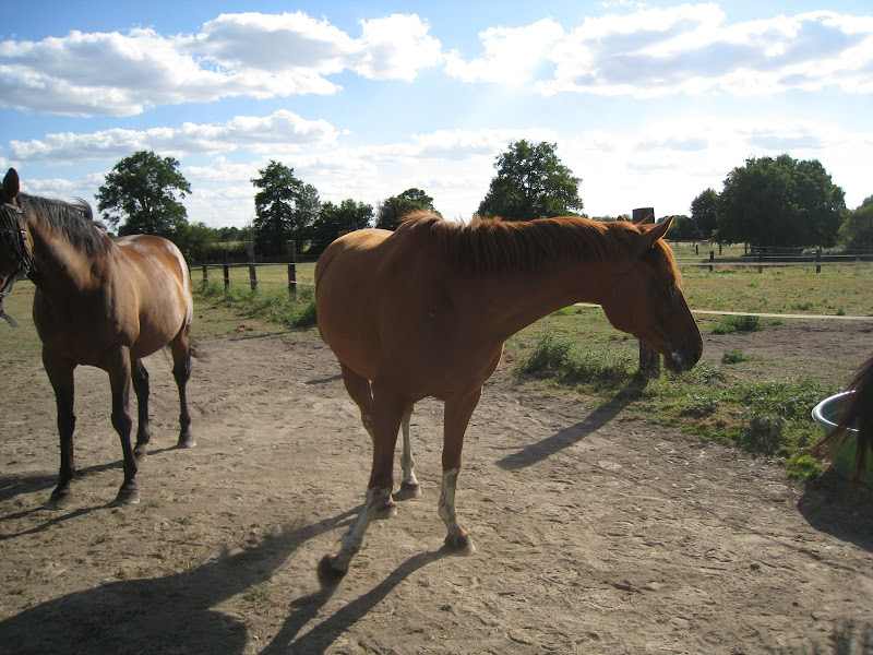 Déconnecté | Alors assagi oui mais non ... hier je l'ai monté et il a juste été con ... Il a beaucoup paddocker en début de séance, il a fallu que je descende deux fois pour le remettre dans la carrière ... là on a bossé trois fois rien mais ensuite je l'ai fait passé et repassé devant la porte de la carrière il a meme pas regarder !! Et puis j'ai tenté un truc ... le bidet ! Normalement il en a une peur bleue (ba oui c'est la piscine des lutins mangeurs de pouney ...) et na a cheval, on est arrivé a rentrer dedans dans le calme et sans renacler !! On finit la séance en faisant un tour de piste de galop avec son pote Dépêche-Toi, ils ont été mignons tout plein. Tours finit on retourne dans la carrière, et là vlan il paddock la me suis vraiment faché et ba il a filer doux direct dans la carriere, là re bidet et on descend !! Sinon, j'ai le petit orteil du pied gauche de cassé a cause d'une juju (ferrée, on se demande apres pourquoi je prone le pied nu! ) qui m'a marché sur le pied parce qu'elle regardait les mouches Enfin l'avanatage c'est qu'on sait comment ca se soigne ... en faisant rien |