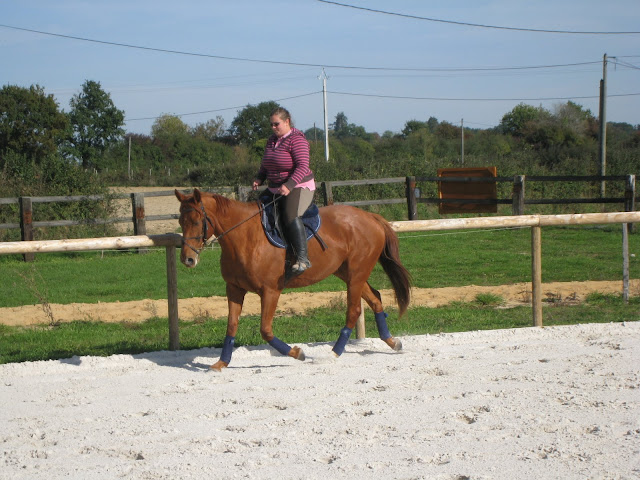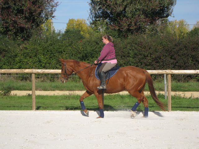 Déconnecté | Oui sur le galop il avance pas d'une cacahuette !!! Mais là n'était pas l'exercice Pour tout dire j'étais petit galop (ca on a vu) transition trot dans l'ordre et le calme (ca c'était pas gagné) et départ au galop a l'autre main toujours dans le calme et toujours pas gagné ! Donc bon ba pour l'instant je veux pas qu'il soit trop dans son galop pour pouvoir le canaliser plus au trot derriere ... je sais pas si je suis claire !! Parce que dans la reprise du G7 il a galop diagonale, passe au trot quelques foulée et reprendre le galop ... sauf qu'avec un cheval qui anticipe comme un malade, il va falloir que je magouille un peu ![]() |