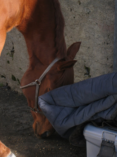 | Dire merci | J'ai failli perdre une botte l'autre jour dans le paddock de Kiki a cause de la boue et ma patate de jument est venu derrière moi me filer des coups de tête, genre "attends tu vas voir, j'vais t'aider". J'ai juste failli me vautrer C'est vrai que c'est pas facile de se motiver quand on sait que de toute façon ils ont tout ce qui leur faut, donc que si on ne vient pas ça ne changera pas grand chose, à part qu'on continuera à être au chaud. Mais bon, ça fait du bien au moral ! |