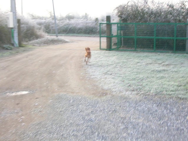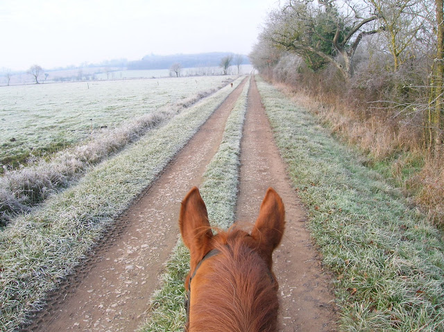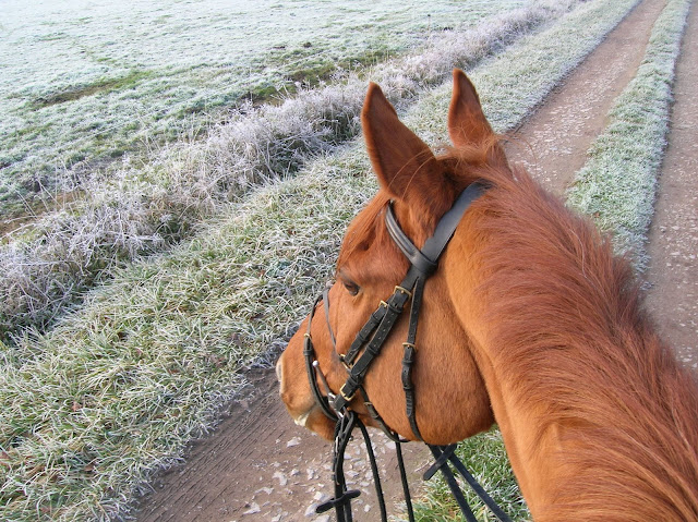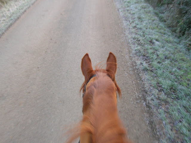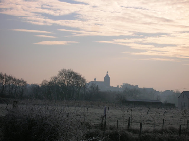 Déconnecté | A la sortie des écuries ... L'église de St Georges ! Le petit point noir dans le champs c'est mon chien ... Mon bébé Il était tres profil gauche aujourd'hui ... Ca c'est le chemin ou l'on galope normalement ... quand c'est pas gelé !! D'ailleur il a fallu que je tiennes le jaune !! Et voilà parce qu'apres j'avais plus de batterie évidement ... |