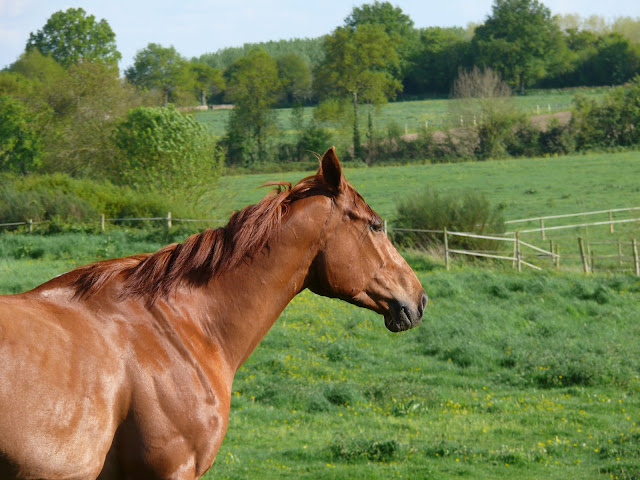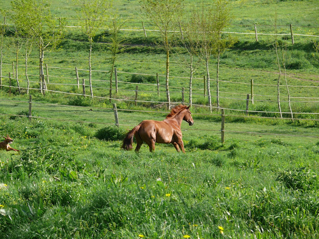 | Dire merci | coucou, il a vraiment bien reppris je trouve, l'herbage lui convient bien !! il a l'air bien et serain, sa fait plaisir de voir pige si bien, c'est super !!! il a l'air de meme avoir un ptit bidou elle est bonne l'herbe de jodulion !! |