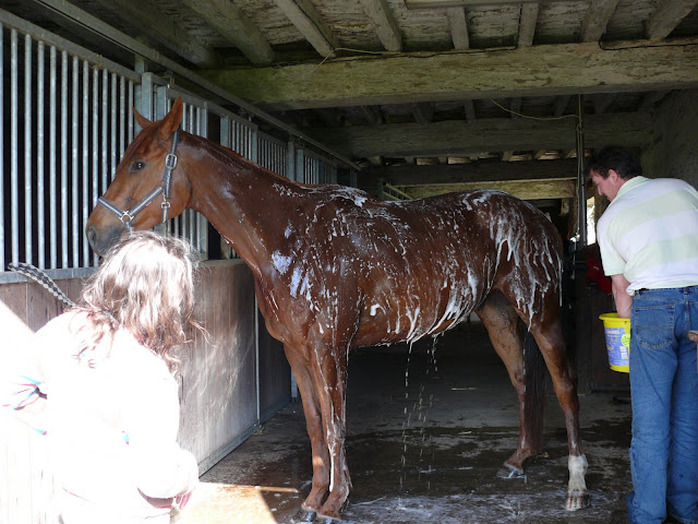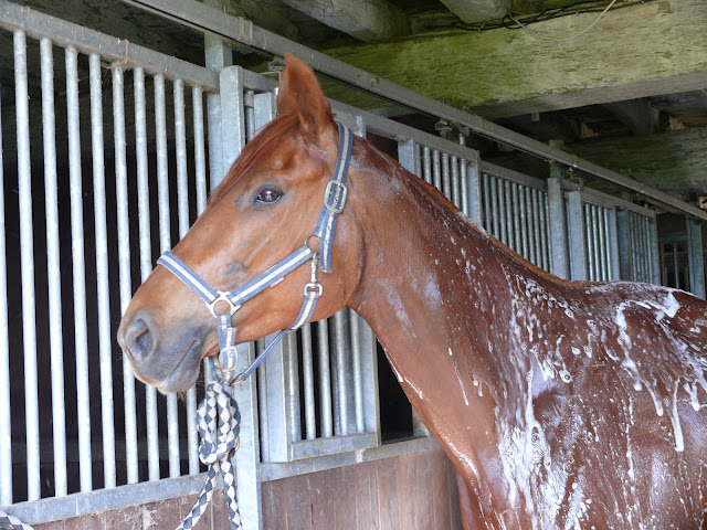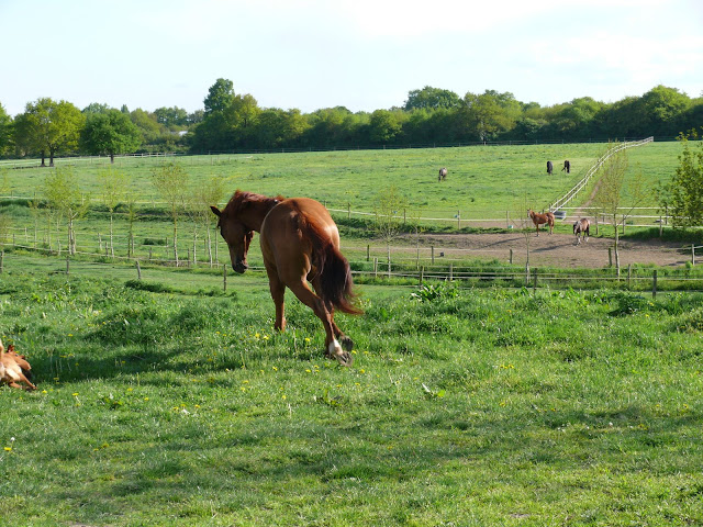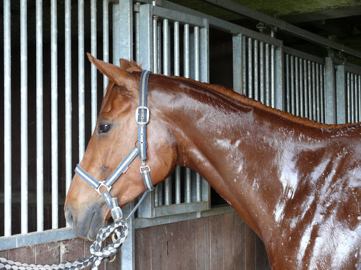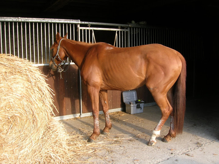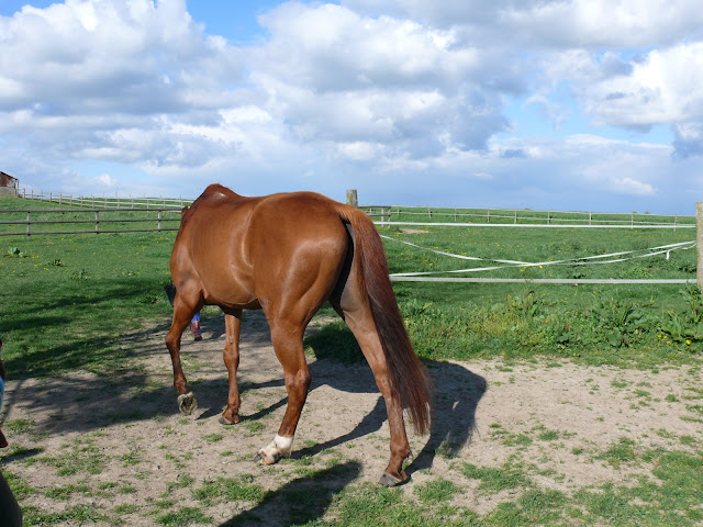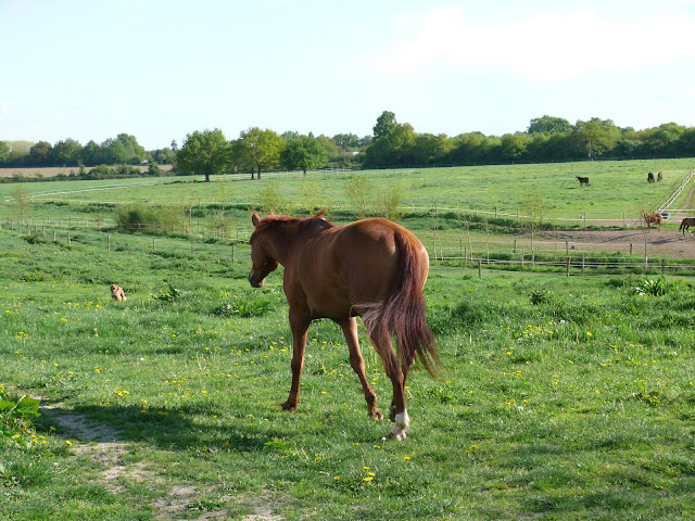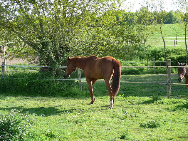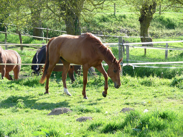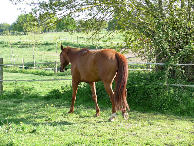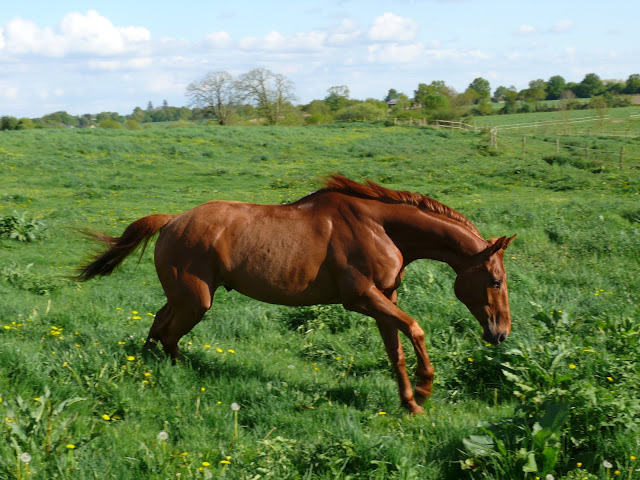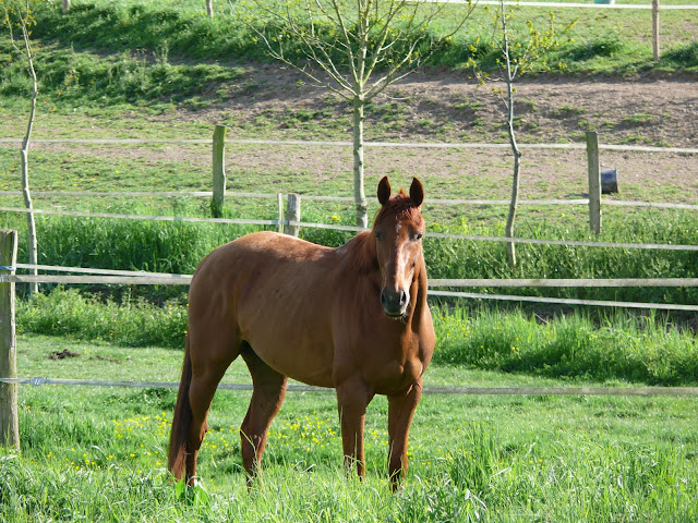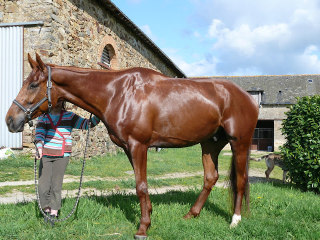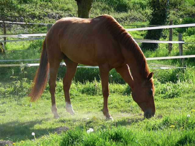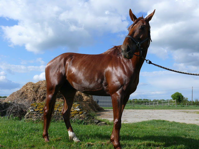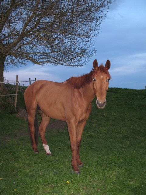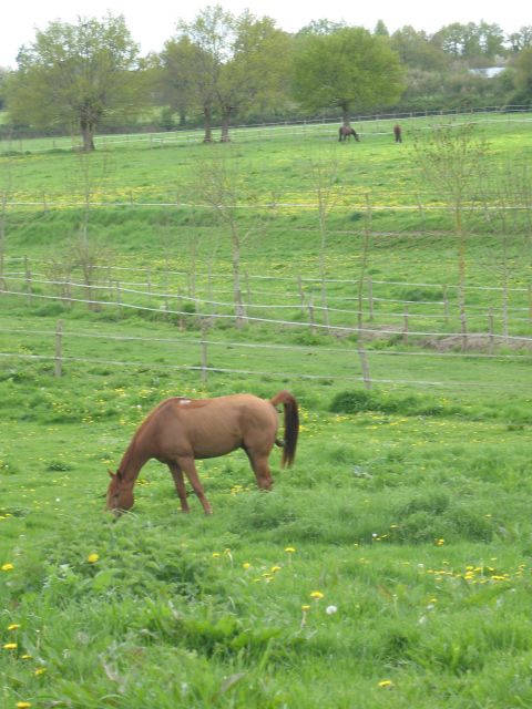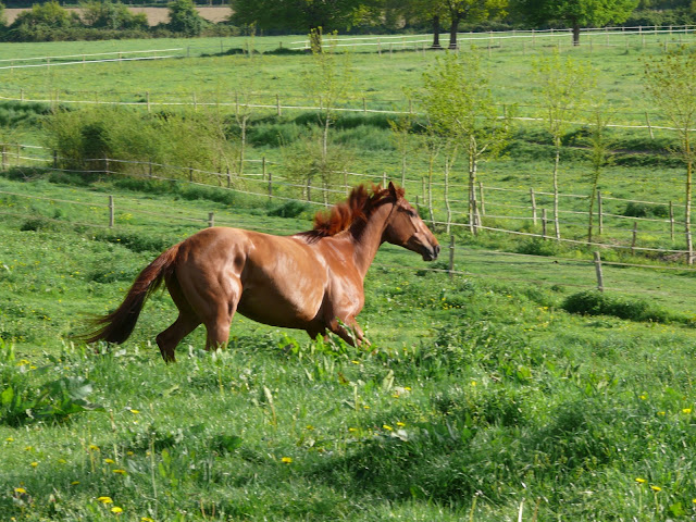 Déconnecté | Oui elle est bonne l'herbe ... va devenir une poulinière moi je vous le dit !! En attendant il a découvert que c'était un PS hier soir et je me suis fait un galop qui fait pleurer dans le champs !! J'ai jamais vu la cloture arriver aussi vite !! Je crois que je vais pas tarder a tente la piste de galop avec lui ... Enfin il faut quand meme que je reprenne le travail sur le plat ... mais il est chaud alors j'avoue c'est quand meme plus facile de lui faire plaisir Là je le laisse tranquille jusqu'au week end. Dimanche s'il fait beau je le monte et douche sinon ba que douche ... De toute facon j'irai le voir parce que c'est son anniversaire ... 5 Ans pour ma banane |