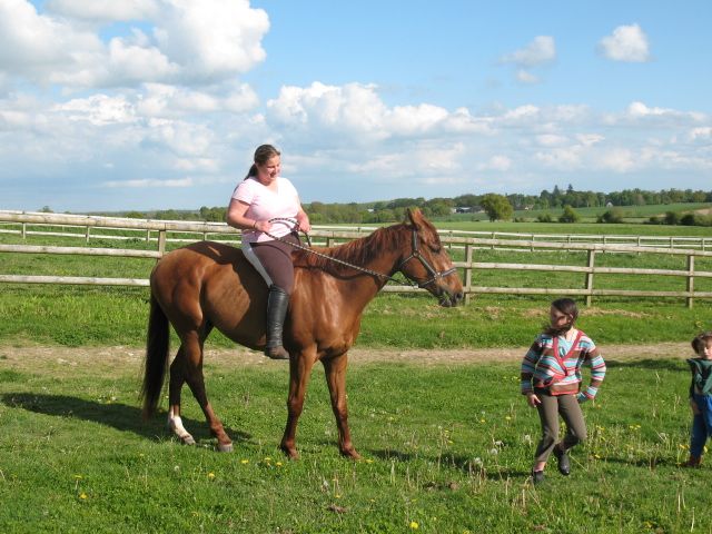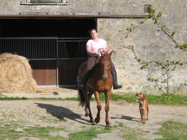 Déconnecté | Bon pour faire remonter mon post du fin fond des oubliettes ... Dimanche TREC !! Championnat Régionnal on finit 4ème sur 9 avec une équipe de 3 au lieu de 4 !! Pige super mimi sauf quand un abruti dont je tairai le nom ... est arrivé au grand galop sur le bitume et ca a completement affolé le jaune et d'autres chevaux ... Enfin il est revenu au calme mais il a encore eu quelques réactions violentes en main il faut que je travaille ca !! Le PTV pas mal sauf qu'il y avait un vent de ouf et qu'en plus il y avait des feuilles explicatives qui battaient au vent donc ca fait tres tres peur ... Conclusion Le n°1: une stere de bois qu'il me refuse 2 fois Le n°2 : slalom au trot le n°3 : contre bas monté Le n°4: Ruelle au trot Le n°5 : contre haut en main Le n°6 : montoir a droite (no coment') Le n°7: bordures maraichaires (no coment' aussi) Le n°8: immobilité en selle une cata ... Le n°9 : tronc je me fais peur Le n°10 : Haie vive super !! Le n°11 : reculer en main !! bien !! Voilou pas de photos pour le moment ca arrive ... quand je les aurai !! Mais hier j'ai fait plein de photos de poulinous |
