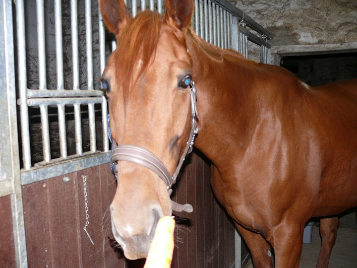 Déconnecté | Bon comme on m'a réclamé des photos j'en ai fait ce soir !!! Donc comme on est passé en heure d'hiver ... et ba maintenant il fait nuit quand j'arrive pour voir le jaune ! C'est trop dur la vie de Pigepige en hiver !! Rien qu'un pansage, calins et carottes !! Reste un peu de poussière ![]() Une carotte ??? C'est cro bon !! Ce bidon ... |