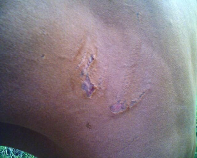 | Dire merci | coup de hache Sheyt', coup de lance c'est encore autre chose le coup de hache c'est le creux qu'il y a entre le garrot et l'encolure ! ça fait souvent très moche sur cette photo c'est pas très accentué : ![]() et le coup de lance c'est un creux dans un muscle, un anomalie des tissu mais c'est pas dangeureux, souvent dans l'encolure, la cuisse ... |