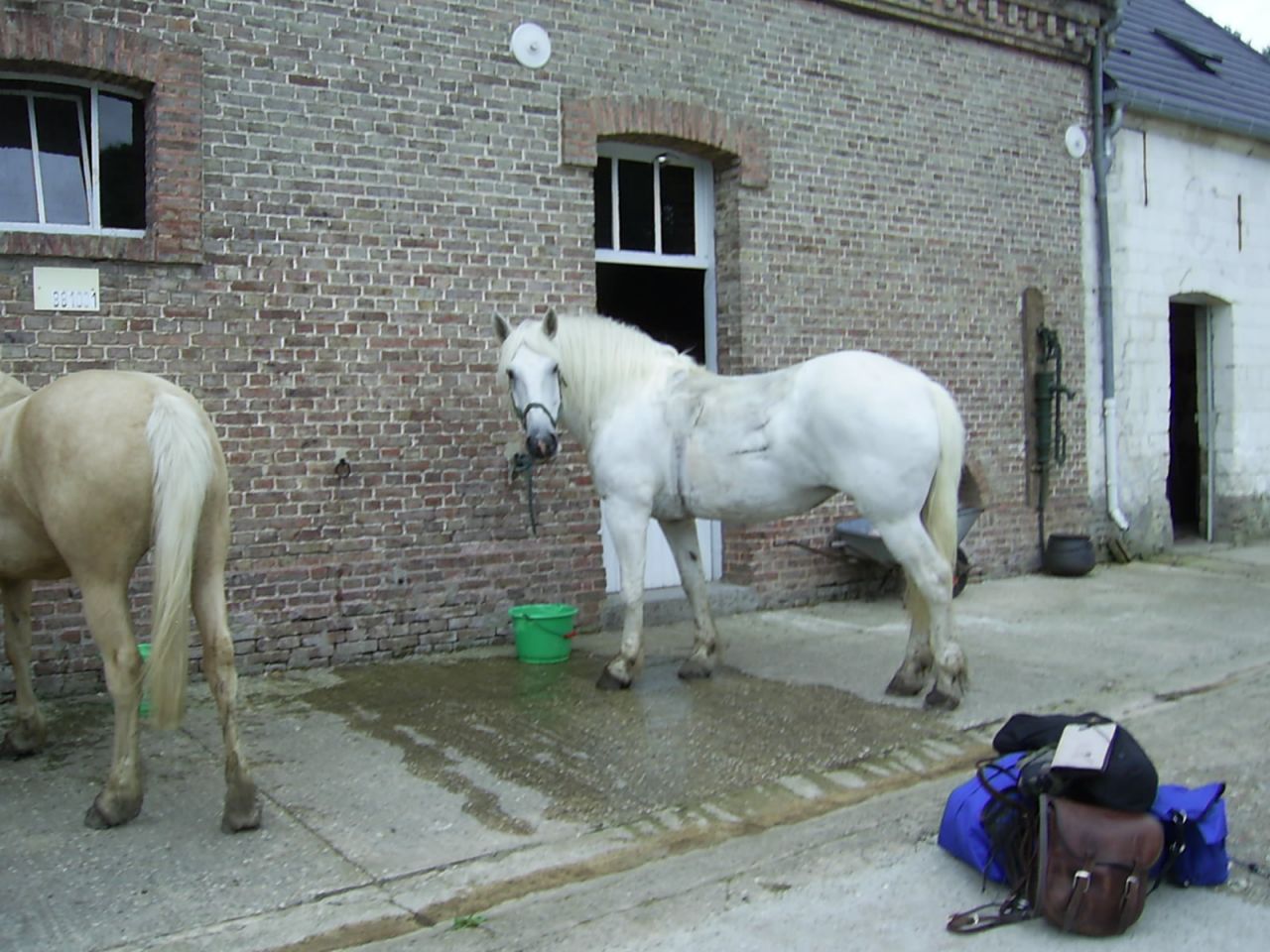 | lol nous somme parti a 3 nous avons dormi une nuit en tente ou des amis nous on ramené le matériel on y a fait un barbecue le reste du temps on avait réservé des chambres d'hotes pour pouvoir prendre des douches eet aller au toilette on a prit des saladieres et des boites de conserves pour avoir du paté et du jambon on achetait du pain..sinon je n'ai pas de secret sur la blancheur c'est naturelle ^^enfin ma jument a un poile qui se nettoit bien a la brosse j'arrive rapidement a enlever les taches ... |