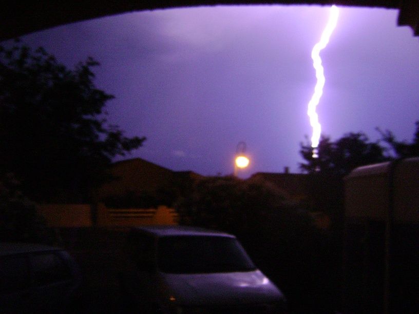 | Dire merci | D'abord tout le ciel s'illuminait et on commençait à avoir les chocottes alors que l'orage arrivait des Cévènnes vers nous : ![]() |