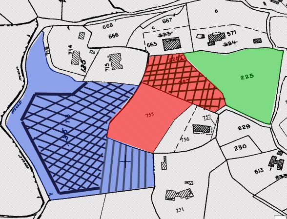 | Dire merci | par le chemin communale![]() et vu que un des terrain sera enclavé, le proprio aura l'obligation de faire un chemin de servidude |