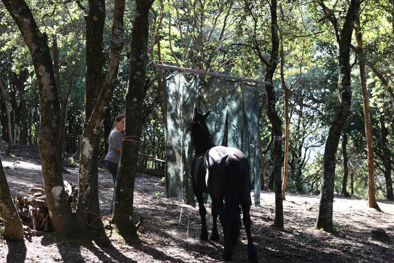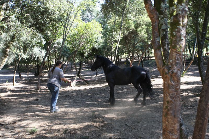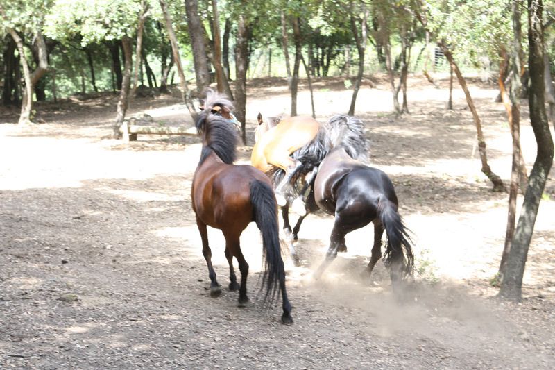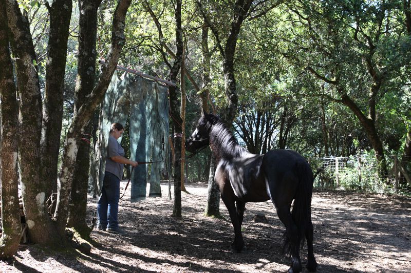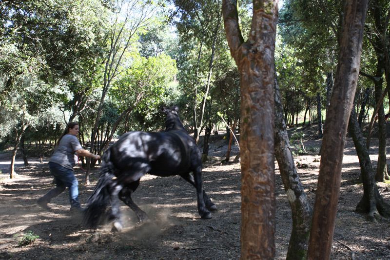| Dire merci | On avait lache Frombu avec une partie du troupeau, il y avait Anakin, Kal el et Leeloo. Et rien a dire c'est passionnant de les voir vivre en troupeau, on pourrait mettre des dialogues sur leur comportements. Frombu en tout cas est un etalon sociable, qui est bien loin de la description que l'on n'a pu nous faire de lui. Si il cherche a s'imposer devant les hongres sans mechanceté, il se montre tres courtois et obeissant avec les juments. On a beaucoup rigolé de voir Anakin et Kal el se cacher derriere Leeloo pour observer Frombu, si respectait les oreilles couche de Leeloo ![]() ![]() ![]() ![]() ![]() ![]() |