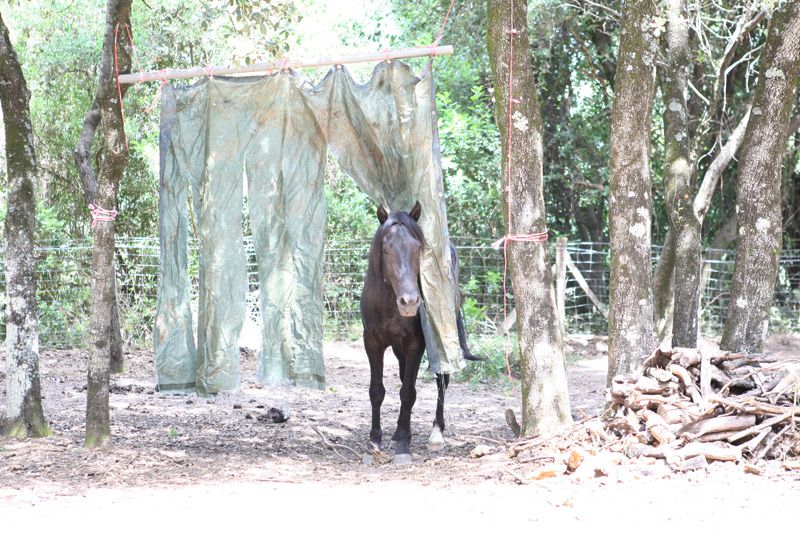 | Dire merci | ![]() Frombu en bon etalon, aimerais bien se garder les juments pour lui seul, donc chercher a chasser les hongres qui se trouve trop pres ![]() ![]() mais c'est sans compter sur Leeloo, qui protege son cheri ![]() on ne touche pas a son homme ![]() ![]() Frombu adore le rideau vegetal, il y est passé et repassé, s'y frotte la tete, ca doit chasser les mouches... ca change de Colomba.. qui voit le rideau comme un monstre sanguinaire ![]() ![]() |
