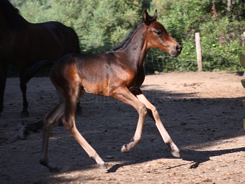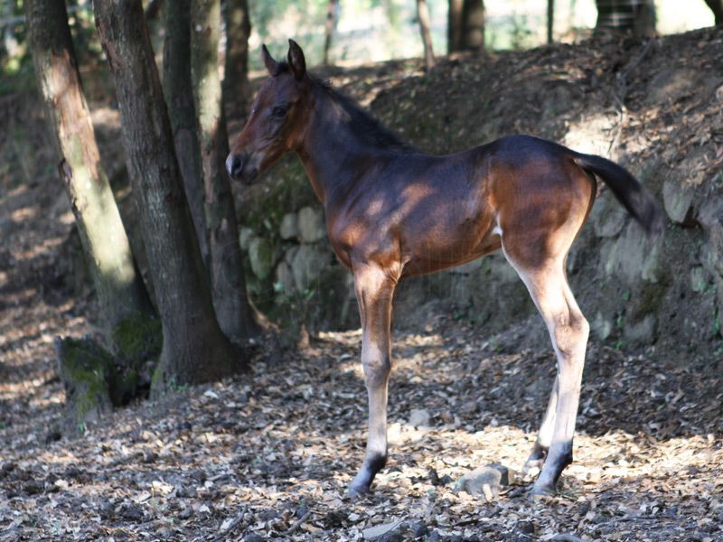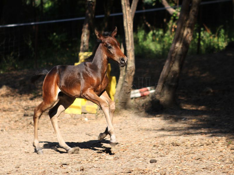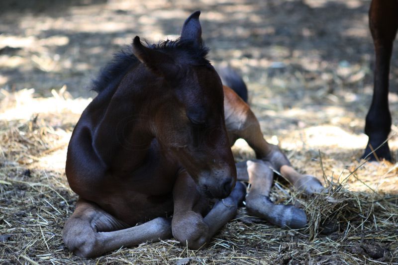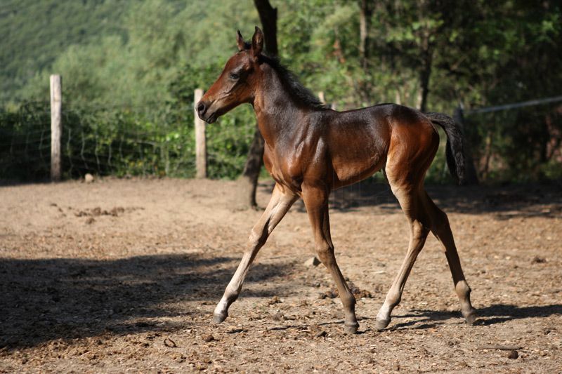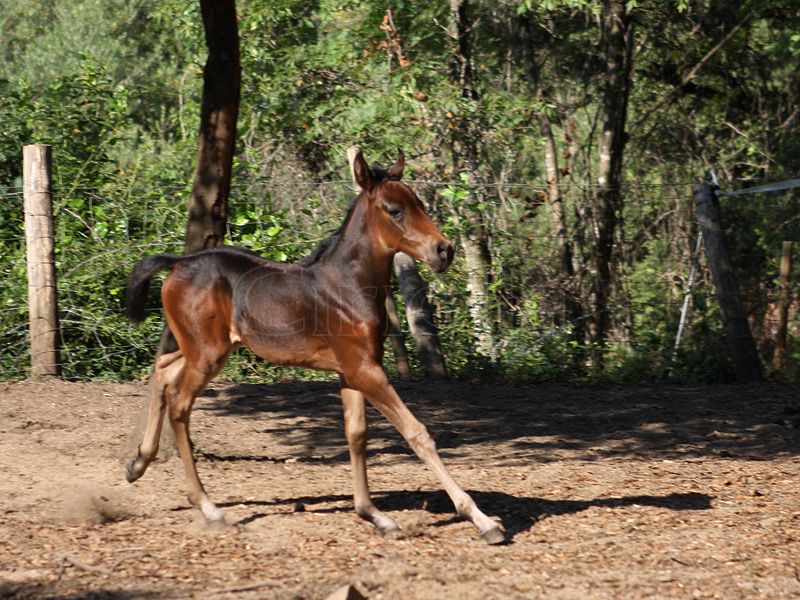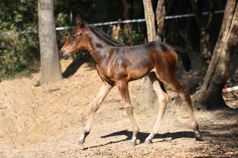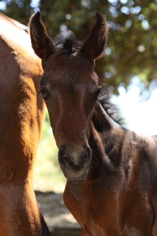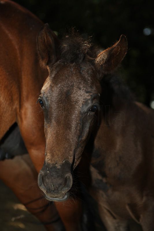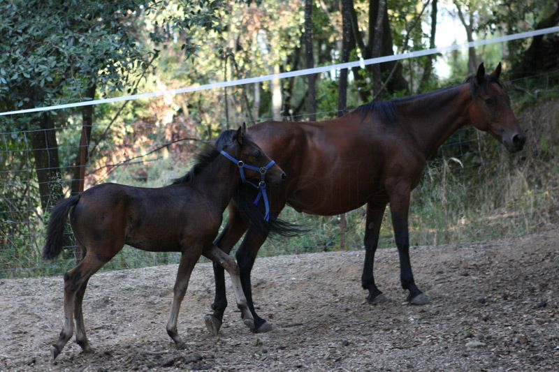 | Dire merci | C'est vrai que c'est joli... Mais très peu de chance qu'elle la garde... Elle risque d'être plus foncé une fois le poil de bebe tombé, style dans les bai brun brûlé ou noir pangaré. Ce sera la surprise |