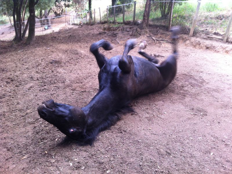 | Dire merci | je viens donner des nouvelles de la troupe tout le monde va tres bien, j'ai enfin trouvé le bon melange de grains pour refaire prendre de l'etat aux deux juments qui legerement fondu a cause de l'allaitement.. par contre les poulains sont eux rond comme des billes les deux hongres sont en forme, et travaillent de temps en temps en balades. ![]() Frombu se porte comme un charme et ayant reussi a m'organiser j'arrive a le travailler un apres midi par semaine, uniquement pour ma part de l'exterieur vu que je compte bien le sortir en course d'endurance des le debut de la saison 2014. ![]() bon c'est pas facile facile, il est jeune et pas du genre motivé de nature question boulot...et le premier tier de la sortie consite a lui prouver qu'il n'y a ni loup ni lion a chaque portail, a chaque virage... par contre il a fait de tres beau progres dans ses allures et son equilibre en general. il est bien posé sur son mors, les seances de plat fait par mon amie lui ont bien profité, actuellement repartie sur le continent pour sa formation, elle revient en janvier et continura le boulot, on aimerait bien qu'il fasse quelque sortie concours dressage, en club3 - club 2 en parallele de l'endurance bref plein de boulot pour le noireaud, je tiens absolument a valoriser mon etalon pour la promotion de l'elevage ![]() hier, au lieu de sortir le gros, j'ai pris ma belle Manzzana, qui semblait tres contente de sortir en balade, elle avait une peche d'enfer et avancait avec energie, Anakin en etait largé Demetra a suivi sans soucis, on a croiser voiture, gens et chien, rien de tel de decouvrir le monde que de suivre maman ![]() ![]() c'est ma petite soeur qui montait Anakin ![]() |