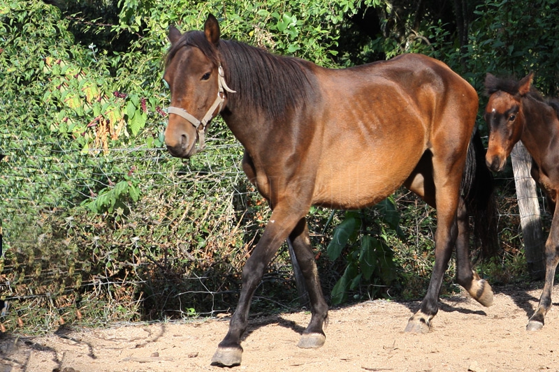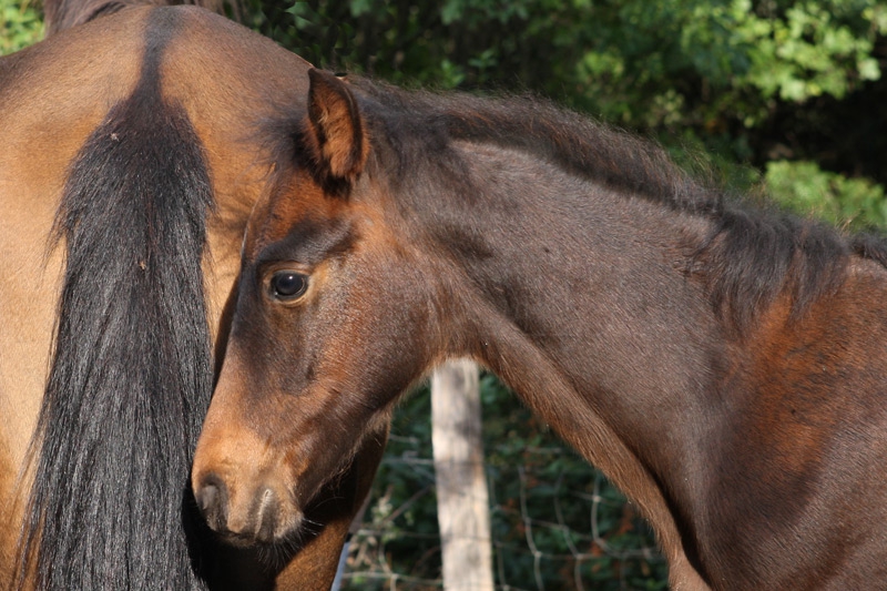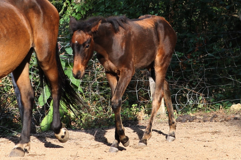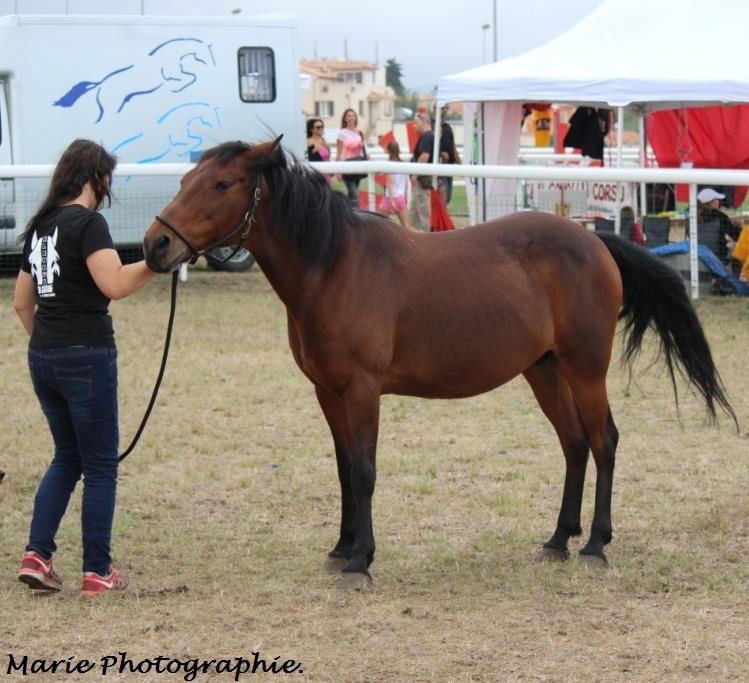 | Dire merci | peyral le cheval corse est réputé pour son tempérament froid, a la première foire de Frombu qui n'etait pas plus vieux, il était en licol plat et malgres les chevaux, poney et mule qui lui passait devant derrière toute la journée, il ne s'était pas transforme en lion inapprochable... J'avais pu le faire monter par des enfants et les gens le papoullait s'étonnant quand on disait qu'il était entier... Donc on verra comment il évolue avec le temps et l'education car son père est le calme incarné |