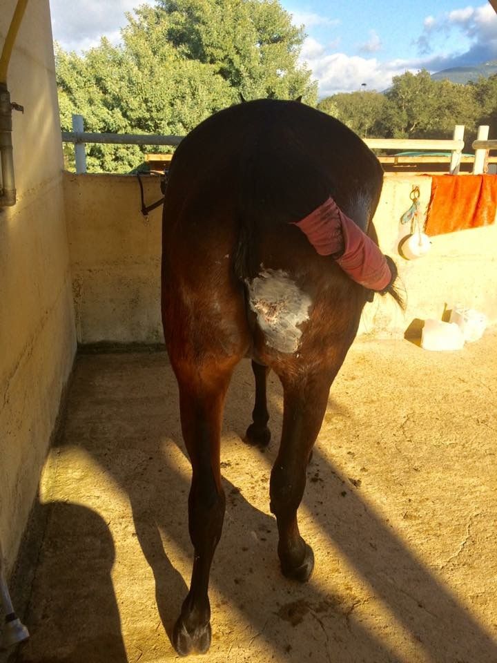 | Dire merci | dilou j'ai une hypothèse mais est elle la bonne? De toute façon, les chevaux sont capable de se ruiner avec du coton... vanessa14 oui sous la pointe de la fesse ![]() Vu qu'elle doit rester le plus tranquille, je l'ai mise dans une écurie pour quelque temps, au moins pour que les points tiennent Sinon une fois nettoyé ça ressemble à ca ![]() |
