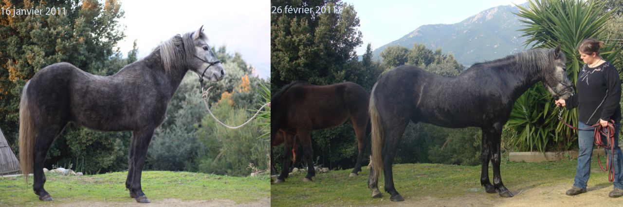 | Dire merci | en regardant vite fait on ne voit pas de diff, surtout que sur la gauche il a la tête plus haute. Mais en regardant bien de près on voit que le dos juste en avant de la pointe de la croupe ne descend plus aussi fortement. ![]() Dans la région du garrot pas de changement visible. ![]() Mais si ça se trouve l'amélioration pourrait venir de l'arrière et progresser vers l'avant en continuant le travail mis en place. ![]() arf zut je remarque qu'il a un postérieur en pince sur la photo de gauche. ![]() Je voudrai tellement y croire que ça s'améliore. ![]() |