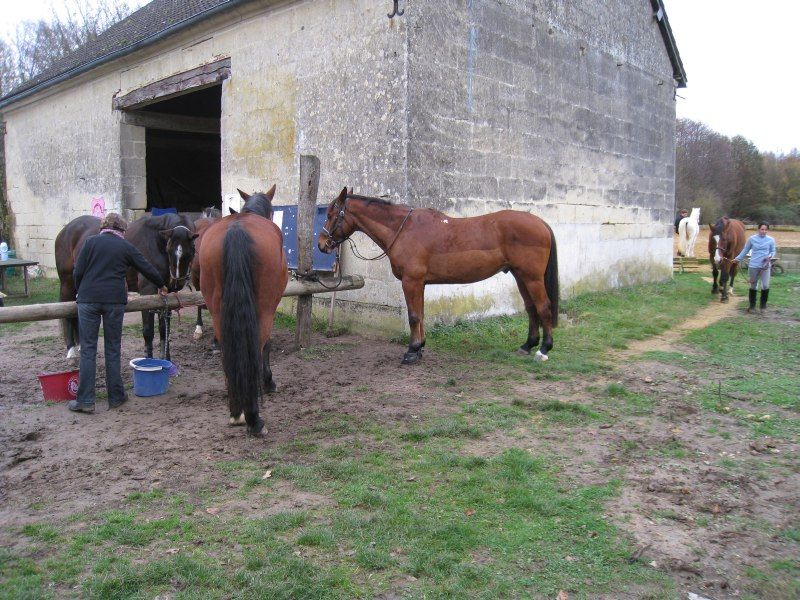 | Dire merci | Cet après midi Lann Bi et moi avons découvert une nouvelle discipline : l'endurance. Nous étions donc engagés en club 2, c'est à dire 20 Km à courir entre 12 et 15 Km/h Au départ de l'écurie L'endurance? C'est quoi encore ce nouveau truc?! ![]() On arrive donc au centre équestre "la pierre à selle", à Les Hayes, au nord du 41 Sur place je rencontre des concurrentes du 37 avec qui je discutais sur le forum FFE... D'ailleurs je partirai avec 2 d'entre elles sur ma boucle! Cool, c'est plus sympa! Du coup Lann Bi fait connaissance avec un de ses coéquipiers, Nouba, une TF ![]() On se prépare pour la visite véto à 14h45 ![]() (le bai brun le plus à gauche sur la photo c'est l'autre coéquipier de Lann Bi, Parco, un TF également) zoom sur l'athlète ![]() ... |