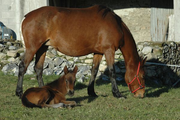 | Dire merci | Il est né le 21 janvier, et sa mère était en chaleur en décembre??? ca porte pas 13 mois une jument? |