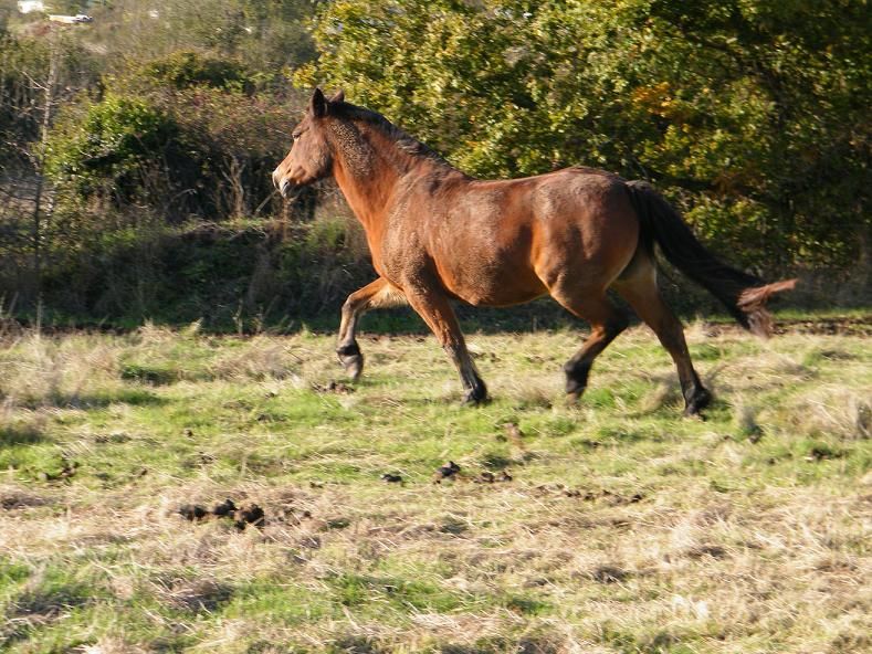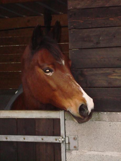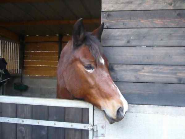 Déconnecté | Alors Gipsy est un croisement peu bannal, sa maman est une trait/arabe et son papa un welsh/ arabe, je l'ai eue quand elle avait 5 ans... Elle était en "dépôt vente" dans le club ou je montais... Les débuts fûrent assez difficiles, elle ne savais pas marcher en carrière (elle a été débourrée en exterieur) ni trotter, et forcément encore moins galoper!! Je lui est appris tout ça en peu de temps, et les choses commencait à être agréables... Puis, il a fallut lui apprendre à sauter, là c'était assez épique, elle avait une manière bien à elle de sauter les obstacles, mais une fois qu'elle a eu compris, c'était vraiment son truc... J'ai fais plusieurs années de concours avec elle en CCE, et elle m'a enmenée au championnats de France en 2003... Je l'ai changée de club en 2004, et là, limite un drame, j'ai été dégoutée par une monitrice qui me hurlait dessus à chaque cours, et finalement, je n'ai fait que 6 mois de cours... A la fin de l'année je l'ai récupérée, et mise en "pré-retraite" dans une ferme équestre pendant 3 ans, mais c'était relativement loin de chez moi (1h00 de route). J'ai donc décidé de la ramener à côté de chez moi pour pouvoir en profiter au maximum... Elle est maintenant dans une association que fait de la pension à 15 min de chez moi, je vais la voir tout les 2 jours... Et maintenant nous travaillons toutes les deux en loisirs, on essaye de toucher un peu à tout (éthologie, travail à pied, jeux, dressage...) histoire qu'elle ne s'ennuie pas... Depuis qu'elle est arrivée ici, je la trouve rayonnante de bonheur, et c'est le plus important... |