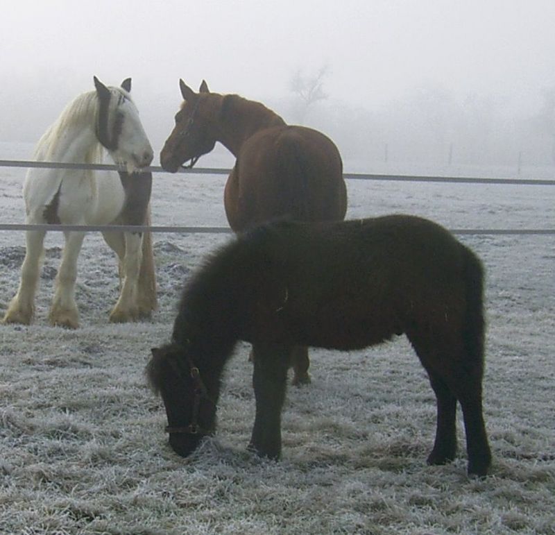| Dire merci | 5 mois plus tard les ennuis commencent et n'ont pas cessés depuis malheureusement. Pour elle je tente tous les traitements, tout ce qui est connu et un peu moins. Sa position de soulagement ![]() Antérieur droit en avant, antérieur gauche en retrait et tête sur le côté. (séquelle d'un faiblesse de ligament et d'un wobbbler traumatique) Mais il faut se rendre à l'évidence, ca ne s'arrange pas vraiment. Je lui ai enfin trouvé une activité qui a l'air de lui plaire : nounou pour poulain orphelin. ![]() ![]() Mais l'entrée de l'hiver est très dure pour elle et elle me fait une grosse crise d'arthrose dorsale depuis septembre. ![]() Son état semble s'améliorer un peu depuis quelques temps. Peut être pourrais je retourner un peu sur les chemins de balade cet été? En tout cas voilà. je voulais juste vous présenter cette jument courageuse pour qu'elle ne tombe pas dans l'oublie. Par ce qu'elle mérite d'être connue. |