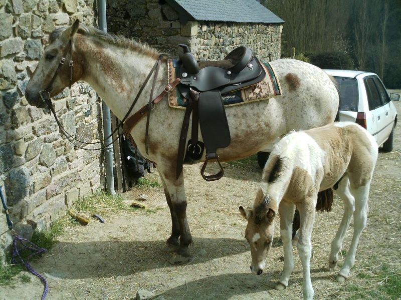 | Dire merci | galelle: c'est un bon élève!!! C'est clair qu'il a dû tomber dans la potion magique quand il était petit! il fait 10cm de + que sa maman... il est aussi grand et large que l'étalon quarter fondation à lamballe... A quand un post sur le petit nouveau? lonestarranch, keradeline: merci! java.de.lartigue: merci!! non, la maman est varnish roan bay (c'est une robe appaloosa évolutive). Et le papa pie tobiano palomino. ta jument est pleine d'un painr, non? Pitch: c'est clair que ça passe trop vite, moi aussi j'ai l'impression que c'était encore hier... |