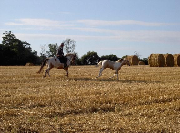 | Dire merci | Merci pour vos commentaires! Sweety est un vrai plaisir à "travailler" (sauf quand il fait le bulldozer...). Ca fait bizarre quand je pense que je l'ai vu la 1ère fois c'était une mini-crevette qui ne trouvait pas les mamelles de sa maman. J'étais toute émue la 1ère fois que je suis montée sessus (et fière aussi)! |