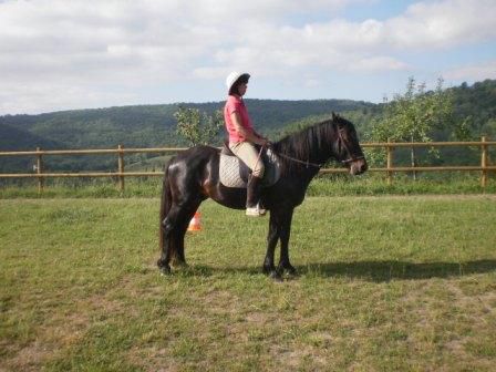 | Dire merci | J'ai moi même une castillonnaise de 10 ans dans quelques jours, je ne suis pas une grande randonneuse donc je ne peux pas trop m'exprimer à ce niveau là Quand je l'ai eu, elle allait sur ses 6 ans et moi je n'avais jamais eu de cheval avant. Pas d'expérience de dressage non plus. Elle avait fait les trois montés et avait d'excellentes bases. Je fais des ballades (plus ou moins longues) du travail sur le plat, du saut et même des jeux (cabrer, taper des pieds, cabrioles) en liberté ... et à petit niveau quoi Elle a un mental extra : patiente, attentive, aime apprendre et aime faire. Elle en est même un peu trop avide d'apprentissage et de faire elle en aurait du coup tendances à se précipiter. Je ne pense pas qu'elle soit un cas isolé et même si je n'y connais pas grand chose, je pense que le fait qu'elle soit une castillonnaise joue (en plus de l'éducation qu'elle a eut avant on est d'accord^^). Je suis tombé amoureuse de ces petits chevaux et envisage d'ailleurs d'ici un an ou deux de la faire reproduire |