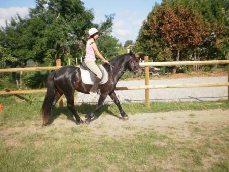 | Dire merci | pour répondre à ta question mustangmax Ubac a un bon pas il allonge bien. Au début du débourrage comme beaucoup de poulains il était sur le frein, maintenant comme il prend confiance il laisse aller et donc son allonge va de mieux en mieux. |