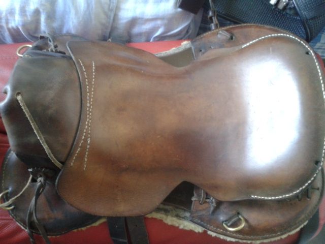 | Dire merci | oui je dois commander du demi-dosset en vegetal et en chromé pour refaire ce genre de piece,mais j'ai commander une pince a coudre donc le je suis a sec pour un moment .Sinon sur la mienne elle a ete trop graissée par endroit : etriviere, tout le systeme de sanglage devenu donc glissant et qui met tout un melange de couleur - graisse bien gras sur les mains. C'est rageant car elle aurait ete plus qu'impeccable sinon ![]() Pas contre je pense laissé un système en ''v'' court comme a l'origine car si c'est moins efficasse ca a l'avantage de ne pas marquer le poil de ma jument ce qui me fait penser que ca ne doit pas etre confortable pour elle, ca ou bien du feutre mais je n'ai qu'une peau de mouton ici. En tout cas tu ne devrais pas etre decu, le siege est plutot dur mais j'ai trouver tres confortable. Vraiment dommage que je n'y trouve pas ma place ![]() Apres j'ai tendance a preferer les selles avec de grosse matelassure, c'est psychologique |