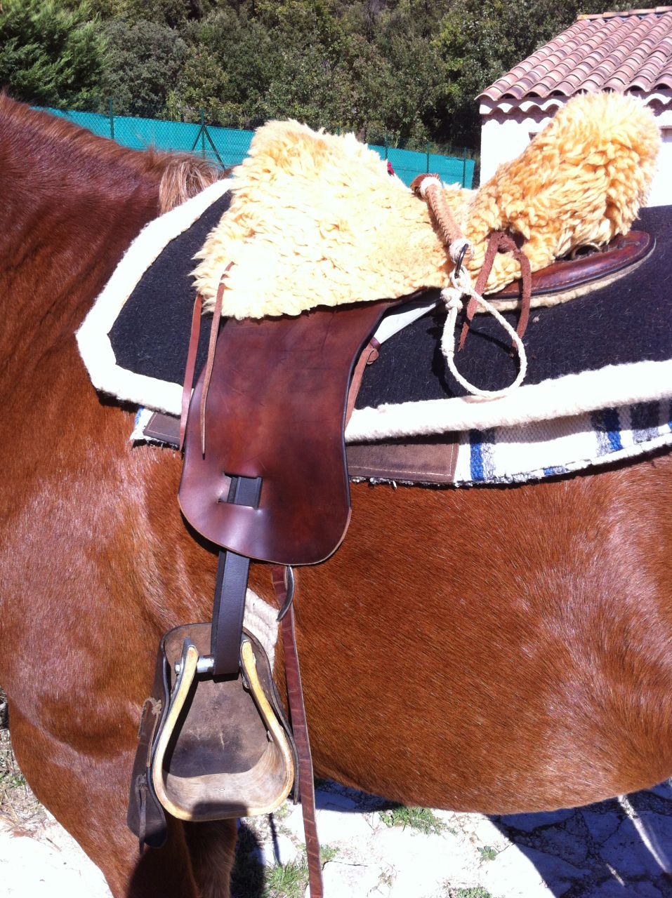 | Dire merci | ben il a du diversifié un peu son modèle, ca ne me surprendrait pas. Le mouton j'avais pas vu, sympa .Des que j'en trouve une plus courte je l'achete puis ben je vend la mienne, definitivement trop grande ![]() Sinon je pense que oui les quartier sont d'origine, j'en ai deja vu une en annonce avec ce type de pare-sueur, mais perso je préfère ceux de la mienne pour le coup, mieux couper, large et sobre. Je regrette de pas avoir d'etrier western + tapaderos , mais je pense que pour monter au quotidien je vais essayer de me trouver une cathare.... pour chevaux moyen avec garrot (ouf la bete reprend du gras et du muscle sur le dos, du coup elle deviens un peu plus conforme ) et garder la oner soit parce que je suis fan de cette selle simplement ou pour l'utiliser lors des changement de morpho de la miss. Bien pratique quand meme |