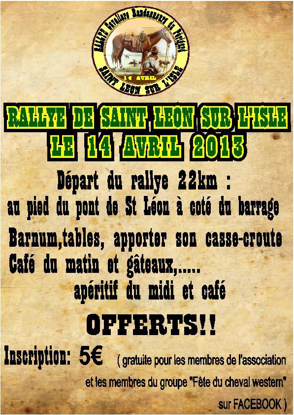 | Dire merci | 7 Avril : Rallye à Manzac sur Vern (24) Rallye (monté et attelé) à Mauroux (47) Rallye à Creyssac (24) 6 et 7 : Westren Show (24) à Paunat Portes ouvertes au Ranch des Lamberts (33) |
