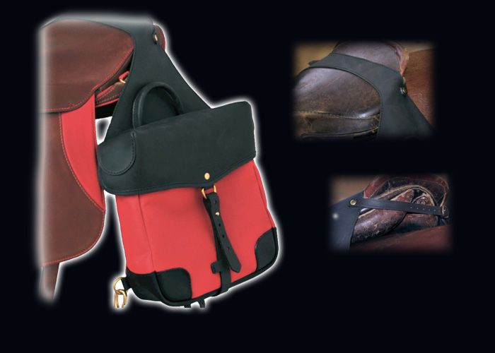 | Dire merci | Ou alors une paire de sacoche reliée entre elle, donc qui ne tiennent pas avec des anneaux, mais dans ce cas avec un gros tapis Mais dans ce cas tu changes la position de la selle sur le cheval et tu risques de créer des points de pression là où il n'y en avait pas. |